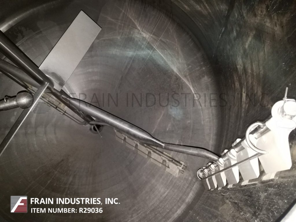 穆勒,450升,120加仑,316不锈钢,夹套,内部真空额定混合罐。船舶尺寸:26“ID x 36”直墙。配有圆顶上的顶部,16英寸的ID螺栓和3“OD卫生料,顶部法兰安装桨式搅拌机,带有9”OD法兰,3-1 / 2英寸中心的(8)3/4“螺栓孔3)2“OD和(1)3”OD卫生顶级端口。全面和底部夹克,带压力额定值:MAWP 150 PSI @ 365°F.全内部真空带有压力等级:MAWP 50 PSI @ 365°F(2)1-1 / 2“ID,侧面和(1)1-1 / 2”ID螺纹底夹套/插座。底部有3个“OD明确中心底部放电,阀门和16”落地间隙没有阀门和16“10“阀门的地板清洁。安装在(4)不锈钢腿上。国委#10605