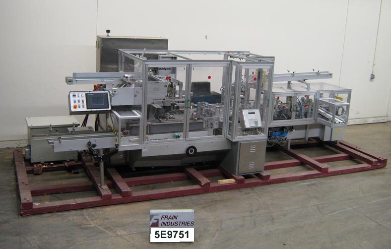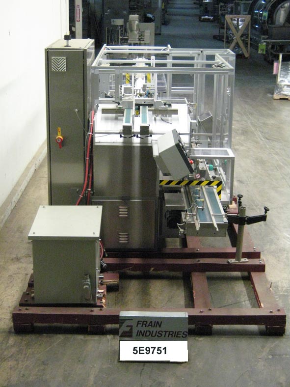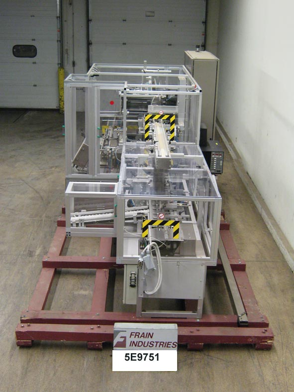 自动、间歇运动、水平、热熔胶传送机/纸盒机,额定速度为每分钟20至50–速度取决于材料和应用。目前设置在5-1/2“中心,带2”高凸耳,纸盒尺寸范围:1至4-1/2“长x 3/4”至12”宽x 3/4”至9”深,带有适当的更换零件。配备40英寸长x 12英寸宽的产品进料输送机、双48英寸长x 4-1/2英寸高侧产品输送带、产品收割机和单臂柱塞装载机。40“长x 17”宽x 13”高性能空白纸盒库,带2个吸盘接收拾取,顶部纸盒压紧。1个吸盘接收试片插入器,带80“长x 3”宽库。Datalogic LS4100激光扫描仪,Nordson 3500V(5)枪热熔胶系统,30”长x 7带气动闸板的宽辊道卸料槽。控制面板、带LCD显示屏的PMC 80触摸板控制器、A/B 900面板视图、PLC联锁安全防护装置,安装在不锈钢底座上。