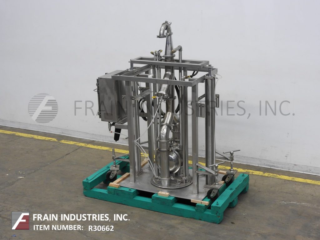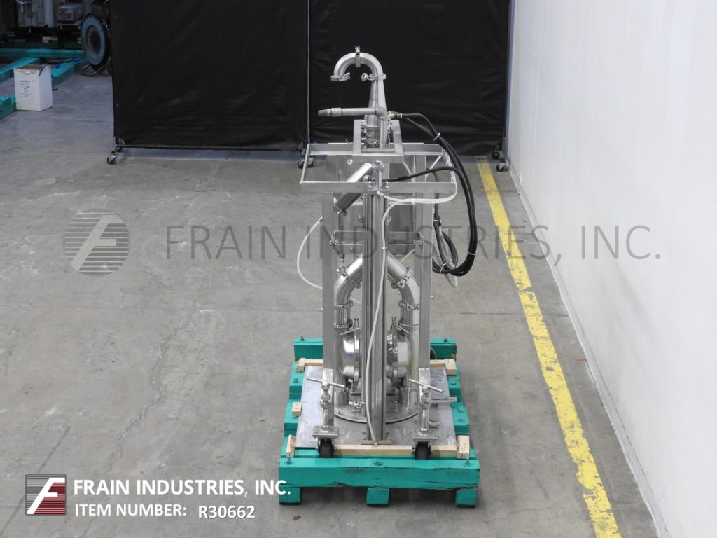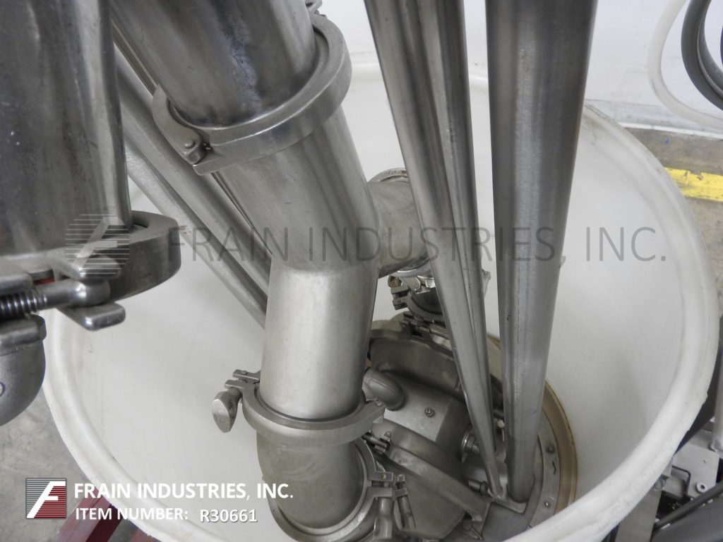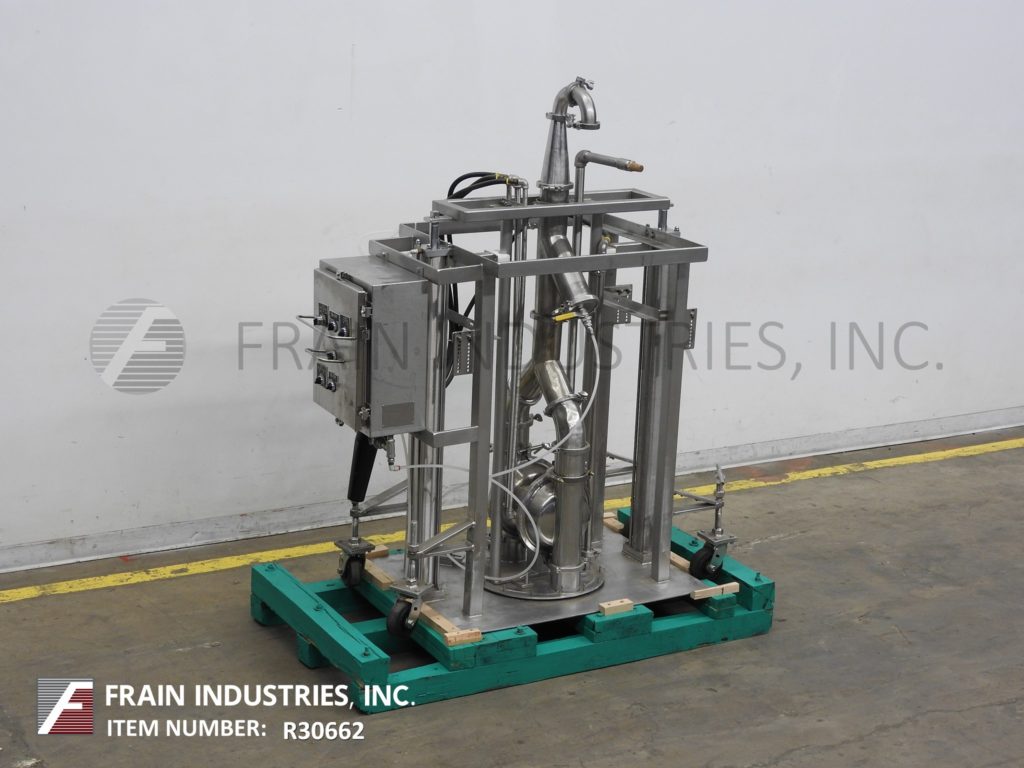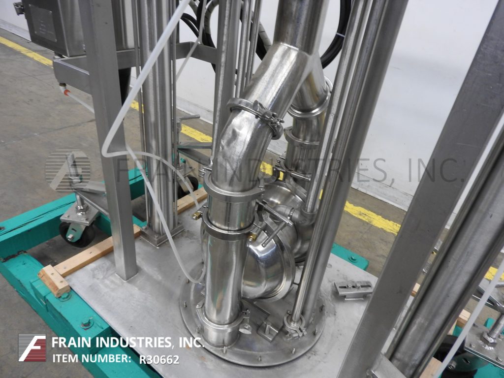 Murzan型号KUS51E,不锈钢,卫生,水壶卸载系统额定从0到5000磅磅或0到598加仑每小时-取决于材料和应用。配有316L不锈钢湿件,卫生级双吸隔膜泵,32”外径食品级塑料轮廓跟随板,带有(4)不锈钢气瓶升降泵,使其卸出轮廓搅拌碗的粘性产品,如糖霜,面糊,和填充精致的固体高达3英寸不改变产品。控制面板有A/B控制器与自动/手动和提高/降低开关与启动,停止,e-stop按钮控制。安装在304不锈钢结构管状基础框架与脚轮。