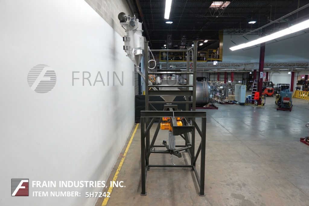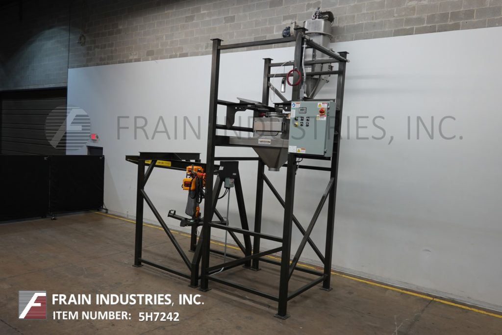 NBE, National Bulk Equipment, Bulk bag, super sack unload system额定容量为4000磅,每小时有几磅和散装袋-取决于材料,应用和操作熟练度。重型结构设计有108"长I-beam延伸41"超越框架与54"长x 54"宽蜘蛛提升袋附件,允许提升各种大小的散装袋。2吨(4000)磅容量的电动葫芦和小车,带有按摩桨,集成的吸尘系统,虹膜流量控制阀和手持式操作葫芦控制。安装在(4)腿重型框架上。