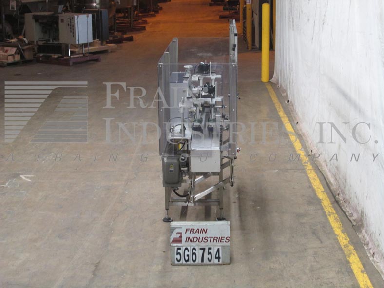 新英格兰型号SO5,二级,瓶定位器和间隔器额定从50至350瓶每分钟-取决于材料和应用10"宽桌面输送机,可调26"长;2"宽边皮带产品在饲料输送机,32"长;4"宽顶部压缩带与产品传感器,帮助定位容器,26"长;2“宽边带卸料输送机38”在饲料/卸料高度和安装在4腿高度可调框架与lexan保护。