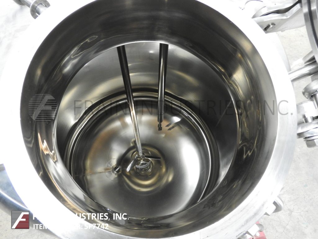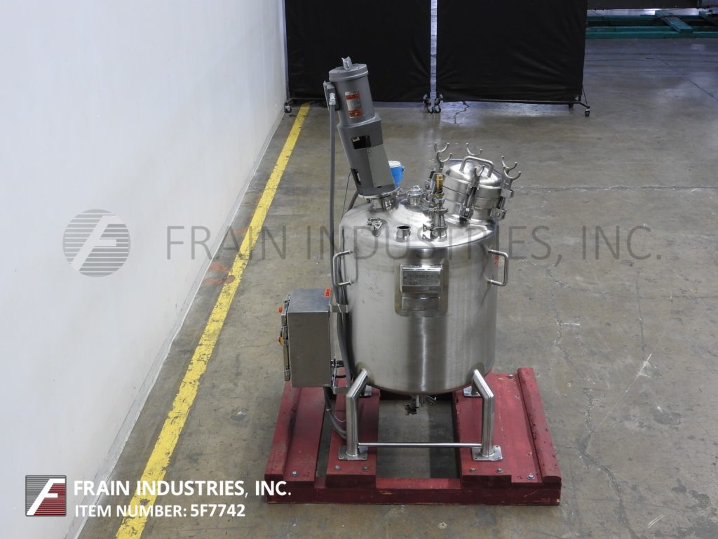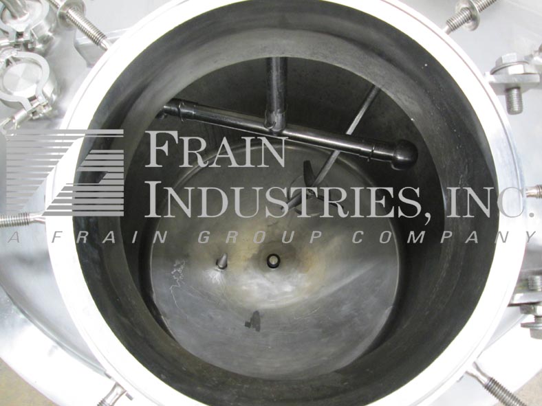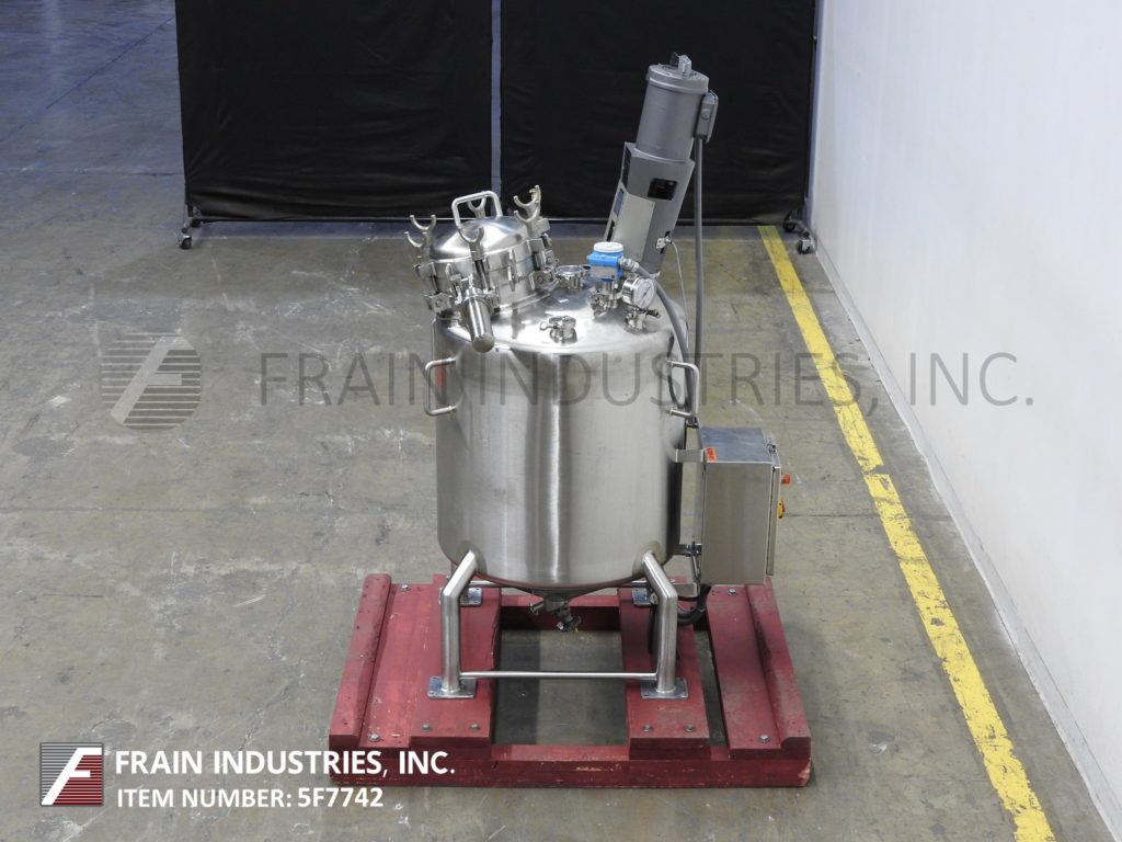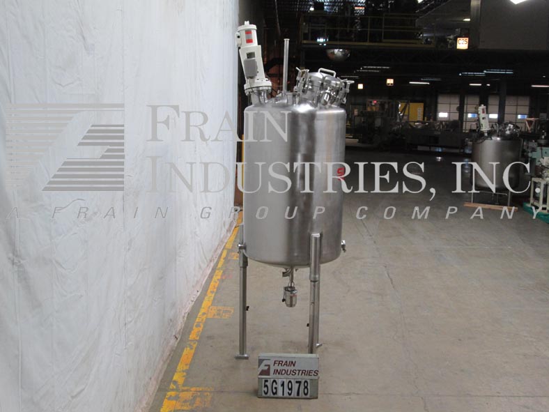 Northland,50加仑,316L不锈钢,混合船。尺寸:24“od; 29”直墙。MAWP的内部额定值为50 psi @ 365°F. mdmt -20 deg f @ 50 psi。配备圆顶顶部,翻转顶部/螺栓12“ID Manway,LightNin Prop型搅拌器,A / B变速驱动器,(3)2-1 / 2”OD,(3)2“OD和(1)3”OD卫生顶部端口,压力表和液位检测器。盘底有2-1 / 2“OD中心底部卫生龙头风格排放,9”楼层间隙。安装在(4)带脚轮的不锈钢腿。