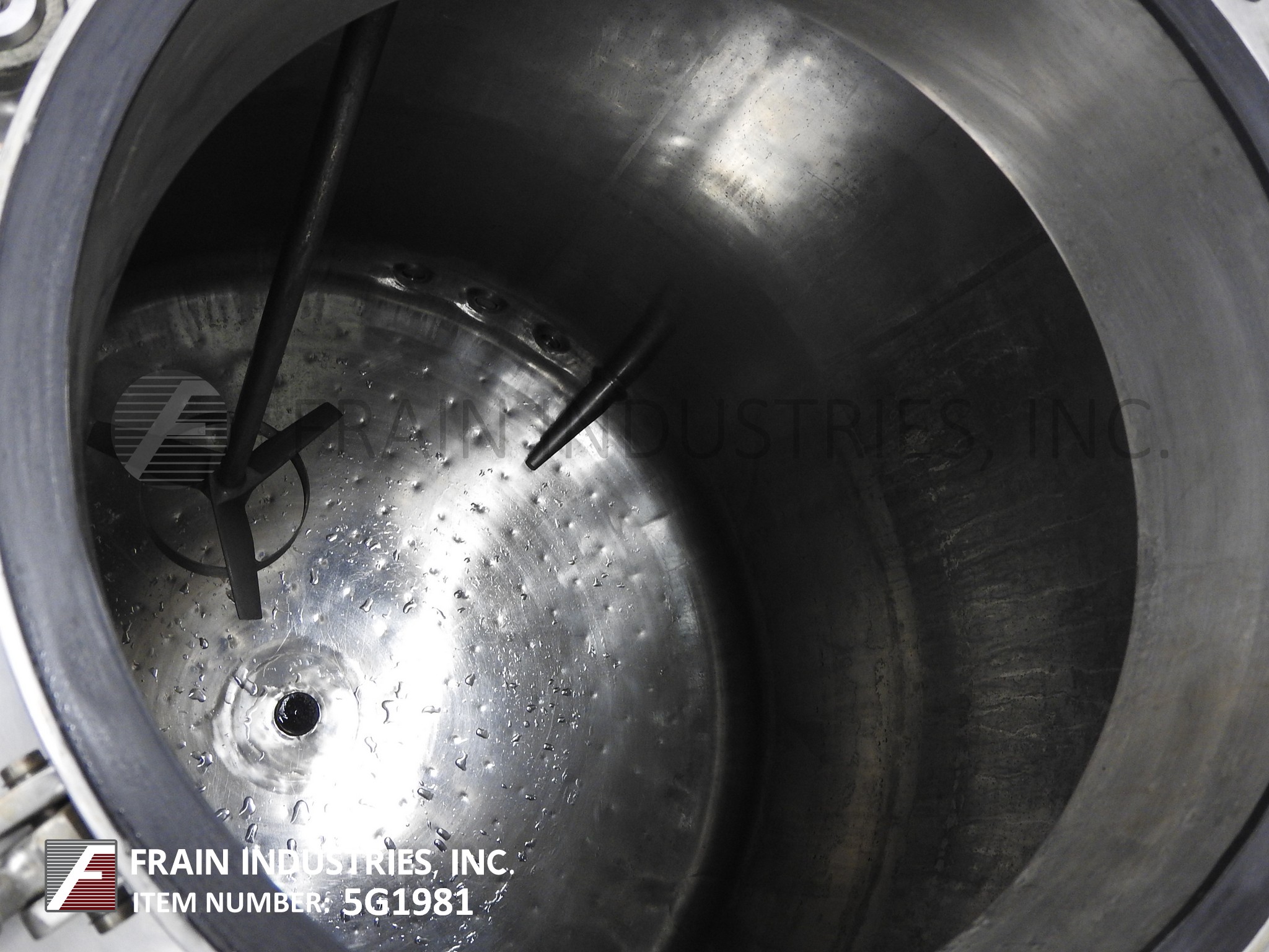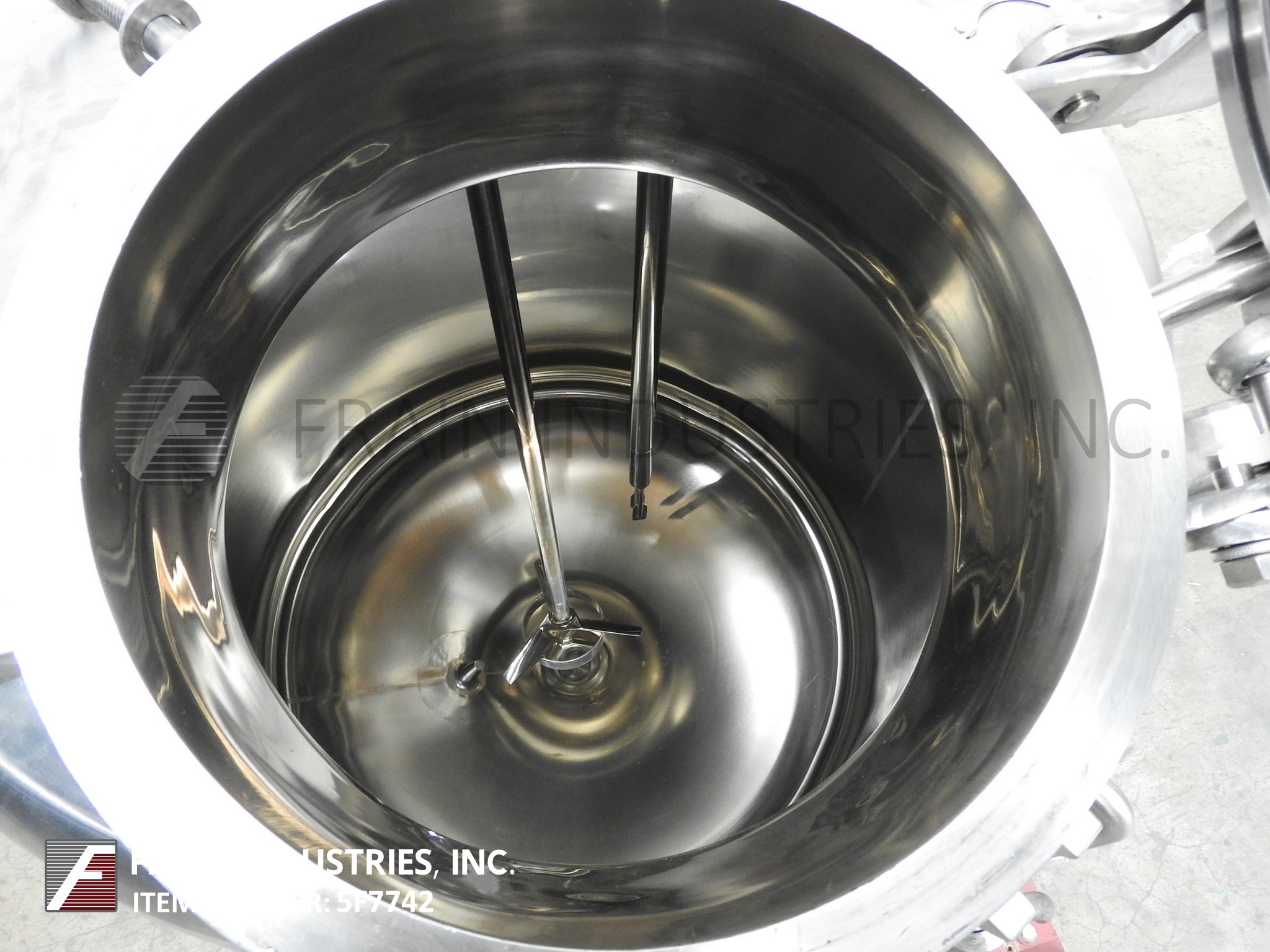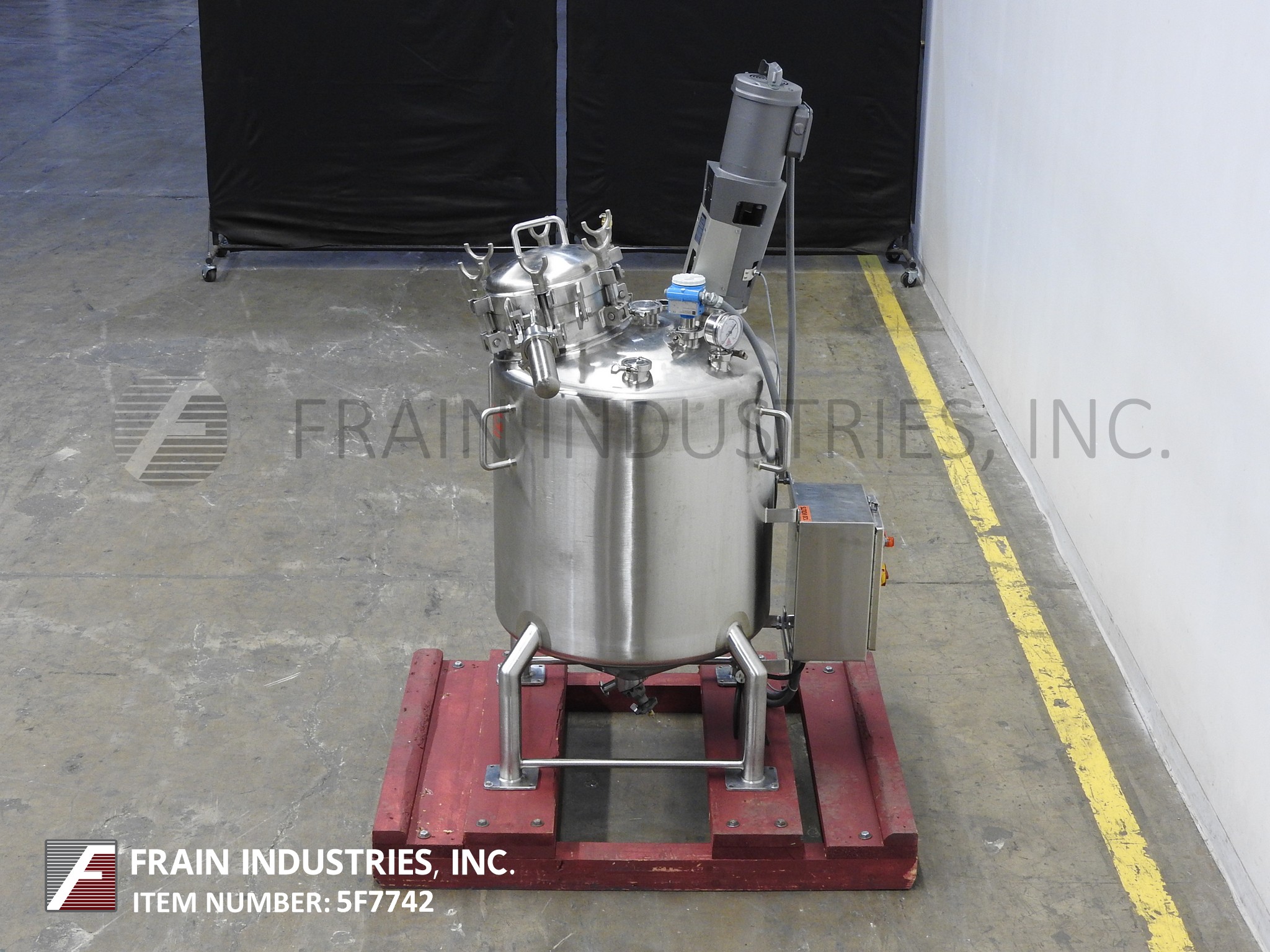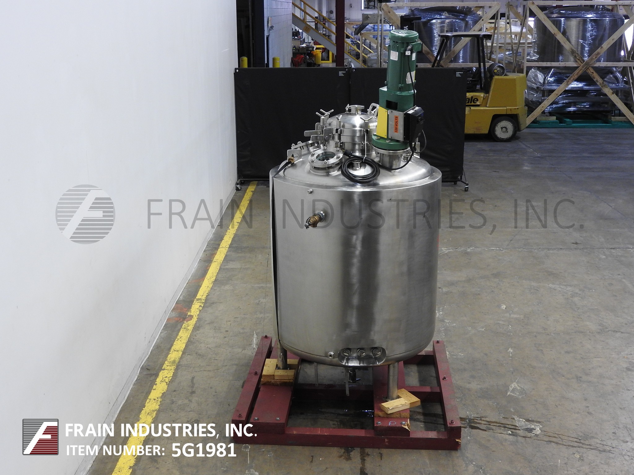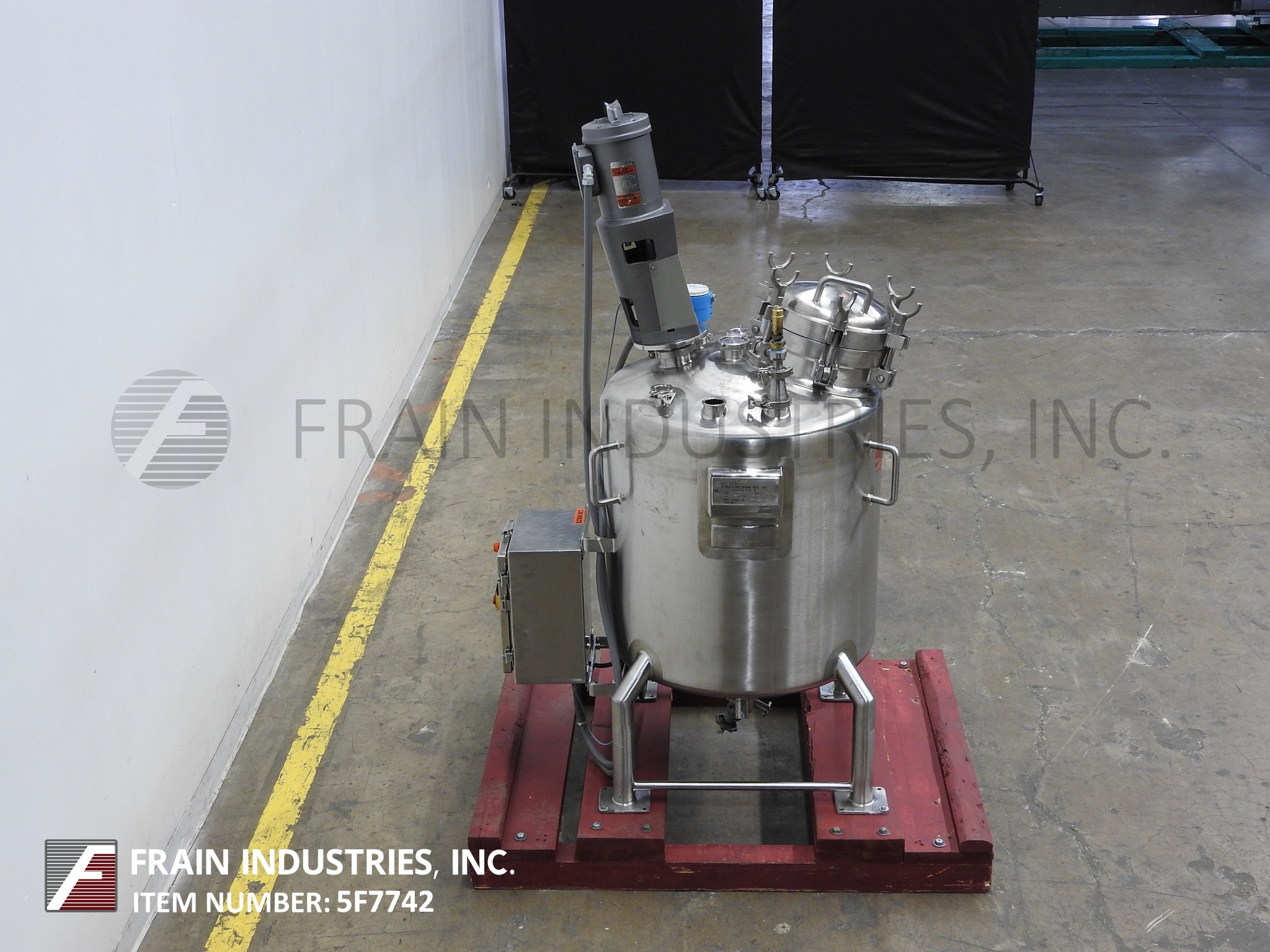 Northland不锈钢公司,2000升,528加仑,316不锈钢,单壁真空额定混合罐。真空等级:50psi, 350°F, MDMT为-20°F, 50psi。配备圆顶顶部,16“ID狼吞虎咽的人,顶部安装支撑风格混合机,三2 - 1/2”,一个2”,3”和两个5“OD卫生港口与国际马铃薯中心喷淋球,两个2 - 1/2”OD卫生港口,盘底部2“OD卫生中心底部排出阀24”地板间隙(没有阀30“地板间隙)。安装在不锈钢支架上。国家董事会# 820