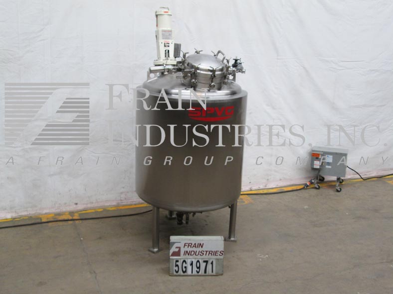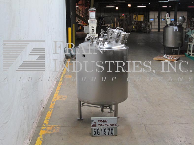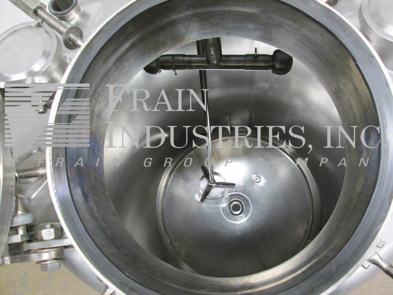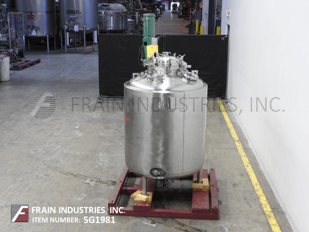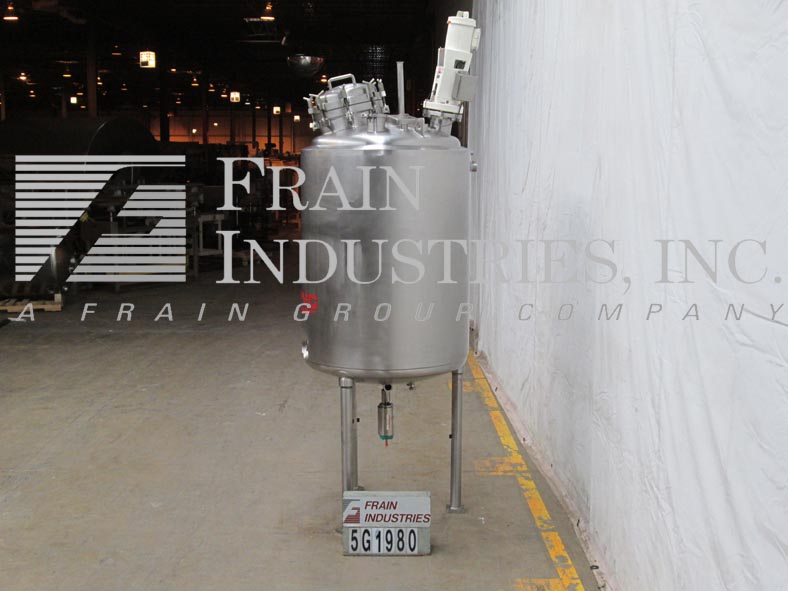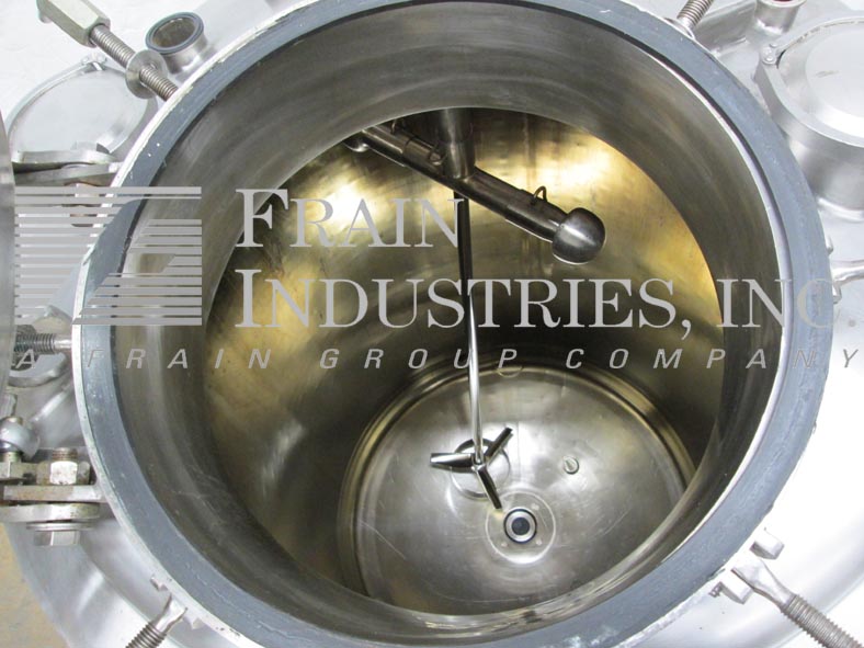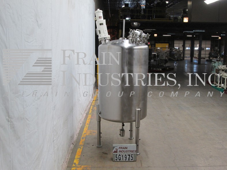 Northland不锈钢公司,1000升,264加仑,316不锈钢,夹套,真空额定混合罐。容器尺寸:36"内径x 47"直壁。配备圆顶顶部,16" ID man way,桨式搅拌器,(2)9" OD 5" ID法兰现场端口(4)2-1/2" OD和(2)2" OD卫生顶部端口。全侧和底部护套,额定压力为:MAWP 150 psi, 300°F。全真空,额定压力为:MAWP 50 psi, 300℉,(1)1"和(1)1-3/4 ID螺纹侧夹套和底部螺纹夹套。(1) 2-1/2卫生级和(3)1-1/2" ID侧底端口。碟形底部具有2-1/2"外径卫生中心底部排放,具有12"地板间隙,没有阀门,安装在(3)不锈钢腿上。UL认证,国家认证板579号
