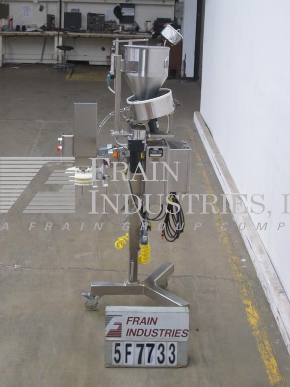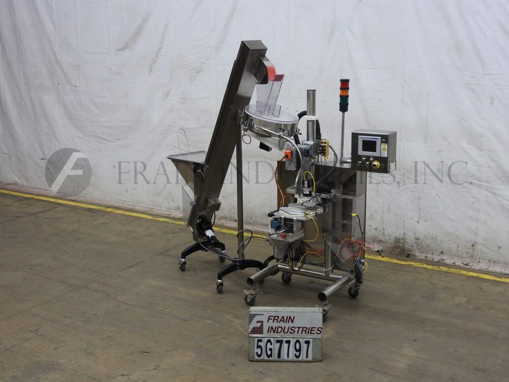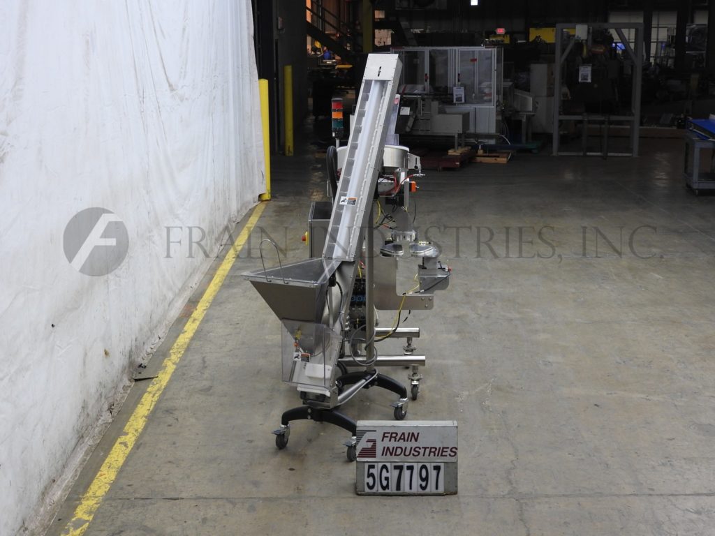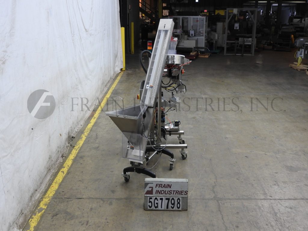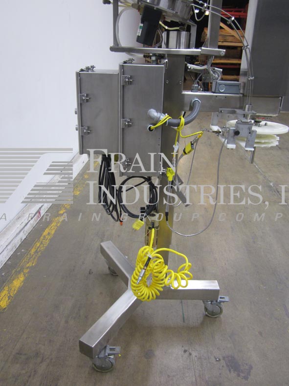 欧米茄设计,型号CDFR-1.5D1,“筒式”干燥剂给料机。额定从50到300瓶每分钟-取决于材料,应用和每瓶滴。将1- 3克干燥剂放入装有适当更换部件的容器中。全不锈钢结构。配备一个23"长x 16"宽x 20"深给料斗,70"长斜带2"高夹板在4¼"中心和74"放电高度。18"外径产品分拣盘,12"长x½"宽容器间隔带和旋转式口袋风格罐分配器。AB PanelView Plus 600控制和控制表盘,用于间隔带,电梯驱动,预定向驱动和间隔驱动。安装在带脚轮的不锈钢底座上。更换不同尺寸的容器所需的部件。