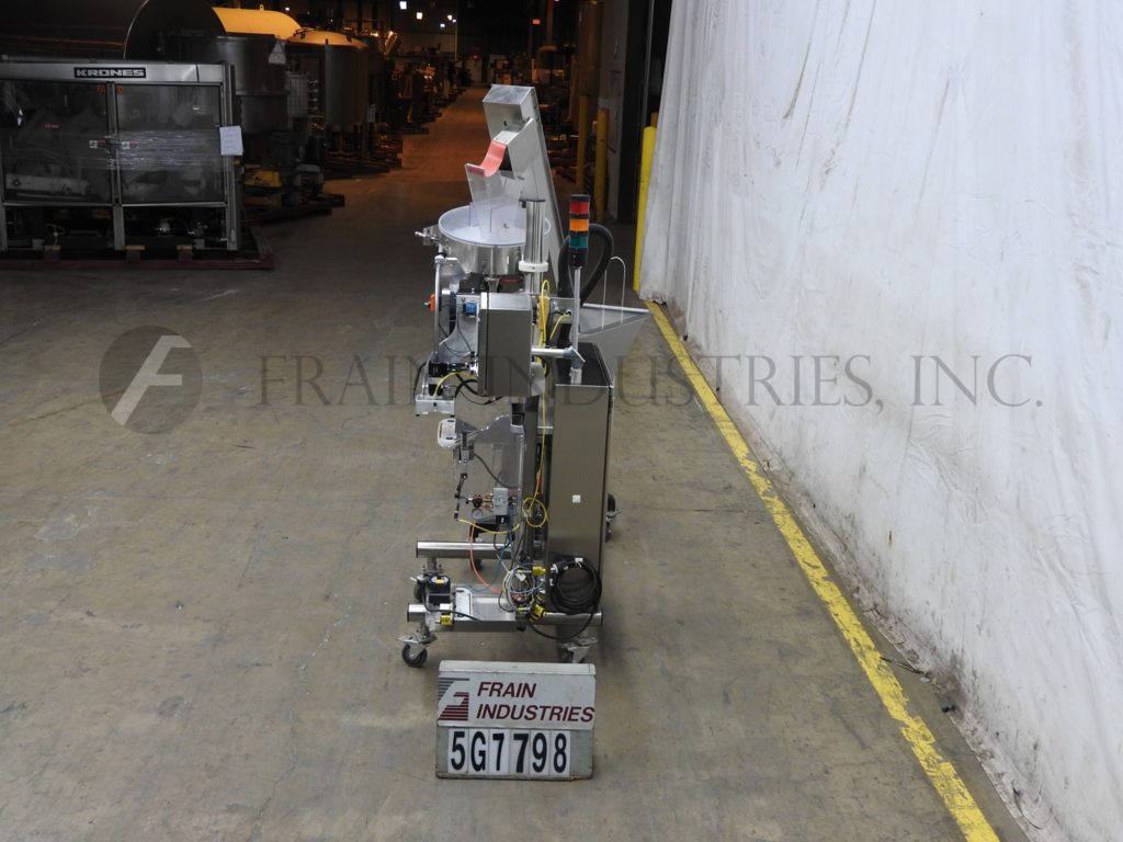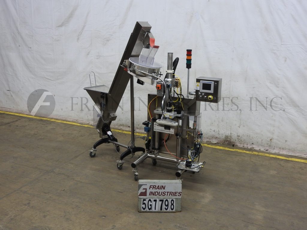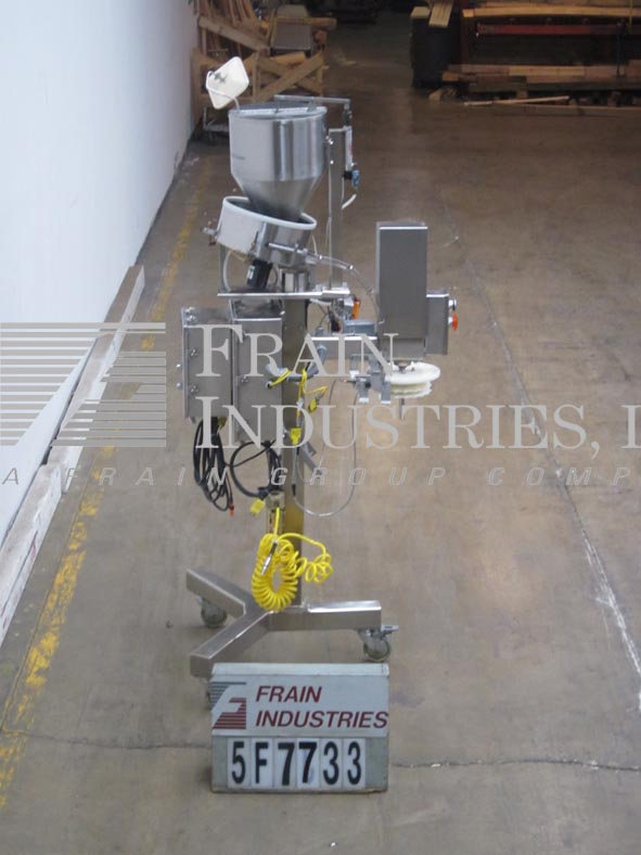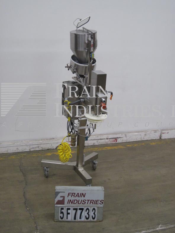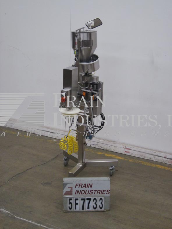 欧米茄设计,型号CDFR-1.5D1,“筒式”干燥剂给料机。额定从50到300瓶每分钟-取决于材料,应用和每瓶滴。将1- 3克干燥剂放入装有适当更换部件的容器中。全不锈钢结构。配备一个23"长x 16"宽x 20"深给料斗,70"长斜带2"高夹板在4¼"中心和74"放电高度。18"外径产品分拣盘,12"长x½"宽容器间隔带和旋转式口袋风格罐分配器。AB PanelView Plus 600控制和控制表盘,用于间隔带,电梯驱动,预定向驱动和间隔驱动。安装在带脚轮的不锈钢底座上。更换不同尺寸的容器所需的部件。