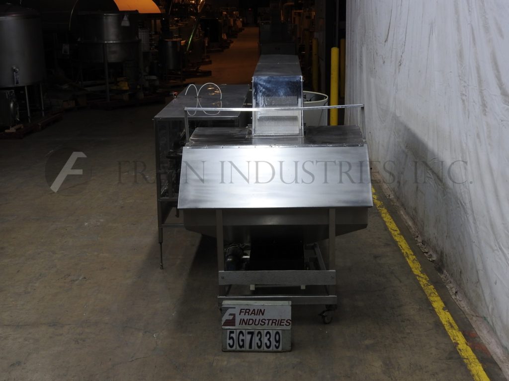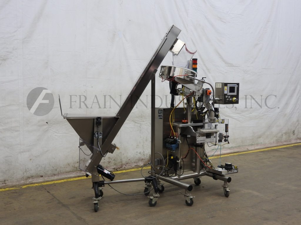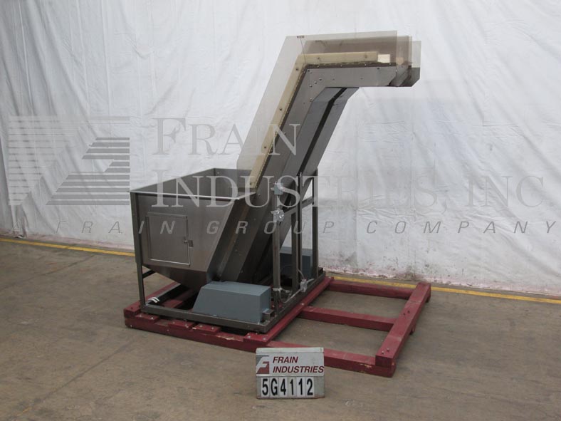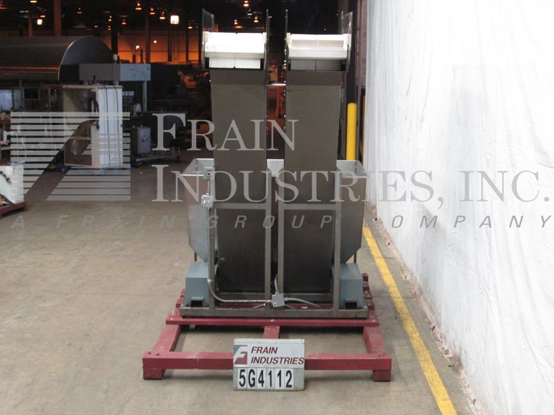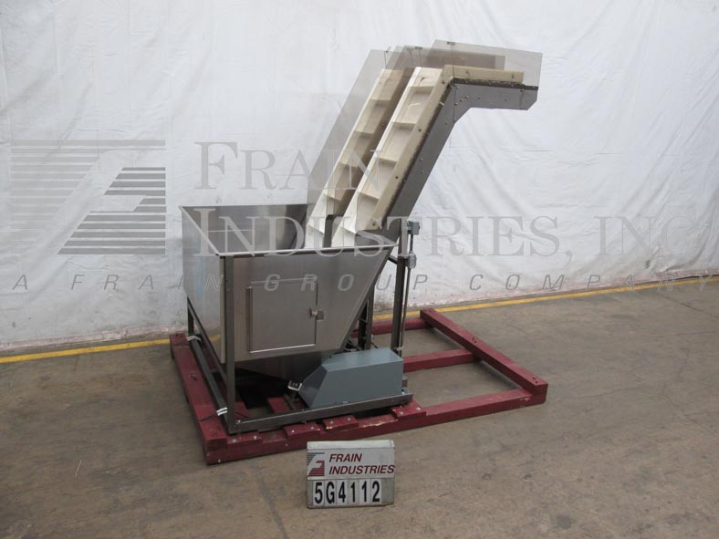欧米加设计,型号CDFR-1D1,在线筒式干燥剂分配器与倾斜切割带式给料机和集装箱输送机额定从50至400单滴和50至300双滴每瓶每分钟-取决于材料,应用和干燥剂设计。不锈钢结构,能够喂1至3克干燥剂到容器单个或多个滴每瓶与适当的改变部分。配备24“长× 21”深干燥剂进料料斗与塑料翻盖,72“长× 2”宽倾斜楔形给料机与连续旋转的饲料输送带与2“高楔形设置在5”中心和塑料盖70“放电高度。12"外径干燥剂分选盘,3/4"宽干燥剂罐管分配器与间隔带和产品计数器。控制面板有A/B PLC控制器和A/B PanelView控制与电梯,预定向器,间隔带控制驱动器与变速控制器和统计灯条。所有安装在不锈钢底座框架和不锈钢容器输送机120"长x 4-1/2"宽塑料德林带与bump车轮卸货。