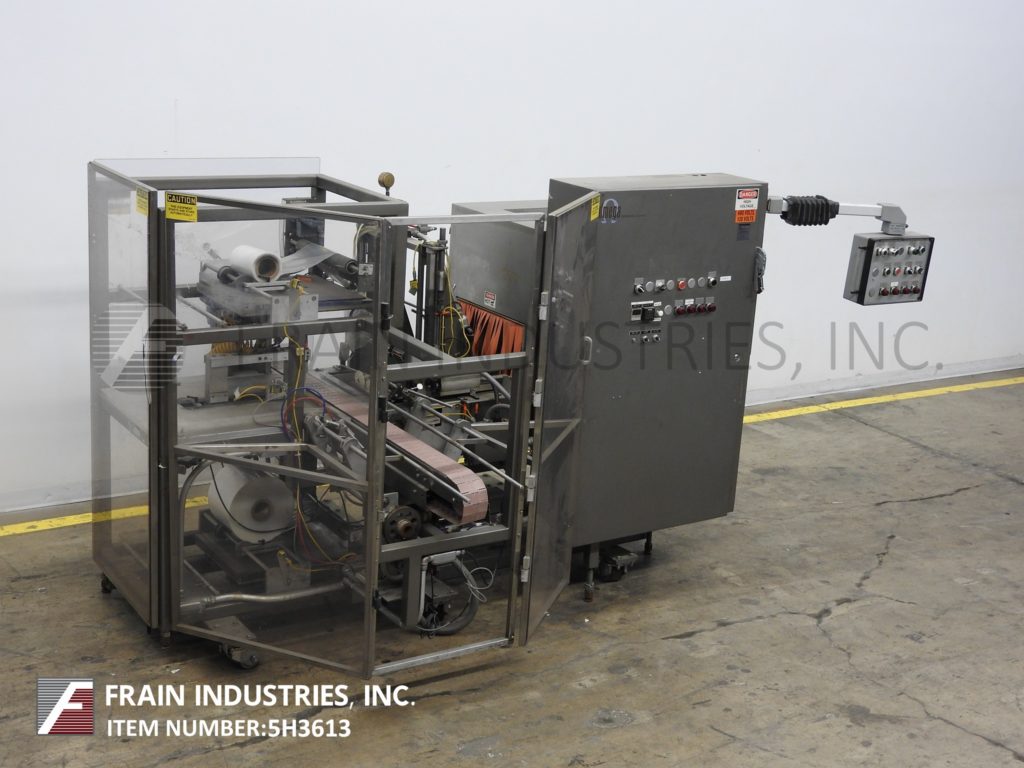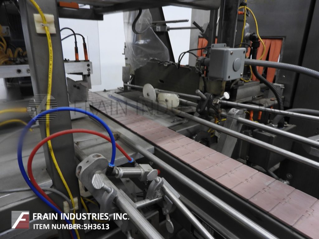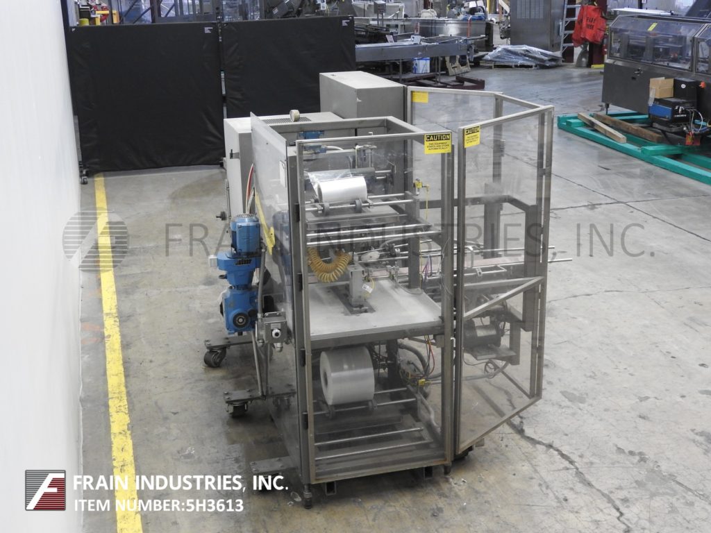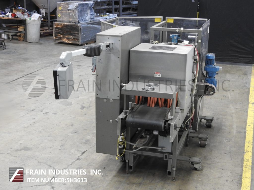 欧米茄设计SL18型,自动,每分钟容器数量-取决于材料和应用。容器尺寸:圆形或方形瓶子,从小数一次到英制加仑,外置或顶置纸盒和第五面板纸盒(所有都有适当的更换部件)。配备4“宽x 72”长塑料delran与整理部分产品在进料输送机包装单个或多个项目和单臂产品装入器通过聚乙烯收缩或拉伸膜,与24“宽顶部/底部电影饲料辊和18”宽顶部/底部密封的下颚和最大产品高度11”。收缩隧道有27-1/2"宽x 11"高总孔径x 24"长热室和17-1/2"宽x 72"橡胶带产品输送机。控制面板有plc控制器和摆动臂控制与密封爪温度控制器,和开/关加热器开关与启动,停止和e-stop按钮。安装在重型基础框架与联锁安全防护和脚轮。