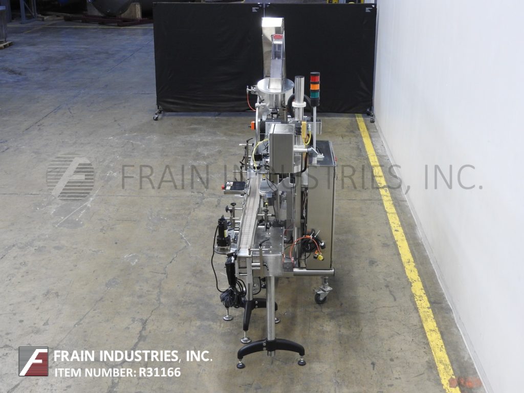 欧米茄设计,型号CDFR-1.5D1,“筒式”干燥剂给料机。额定从50到300瓶每分钟-取决于材料,应用和每瓶滴。将1 - 3克干燥剂放入装有适当更换部件的容器中。全不锈钢结构。配备一个23"长x 16"宽x 20"深给料斗,70"长斜带2"高夹板在4¼"中心和74"放电高度。18"外径产品分拣盘,12"长x½"宽容器间隔带和口袋风格的罐分配器。AB PanelView Plus 600控制和控制表盘,用于间隔带,电梯驱动,预定向驱动和间隔驱动。安装在带脚轮的不锈钢底座上。更换不同尺寸的容器所需的部件。