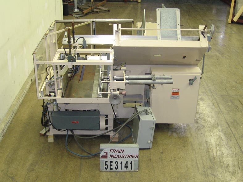 自动,间歇运动,箱安装,底部封胶,速度可达45 cpm,取决于箱的大小。占地面积小,重型构造单元可以处理RSC和HSC箱子,箱子尺寸范围为:8" - 22.5" L x 5" - 14" W x 5"至15" D,并拆卸空白尺寸范围:13" - 34"长x 11 - 24"宽,24"长x 20" W空白盒杂志,带带输送机,48" L角度的情况下给料机,(2)真空吸盘吸收空白盒pic n的地方,气动关闭器,气动单臂冲压压缩站,和PLC控制器。