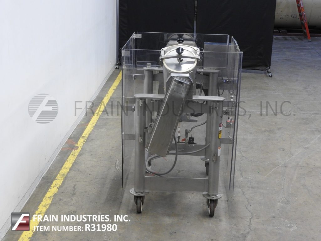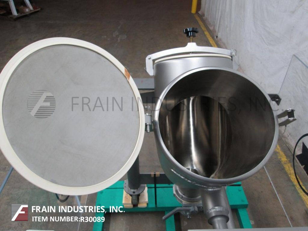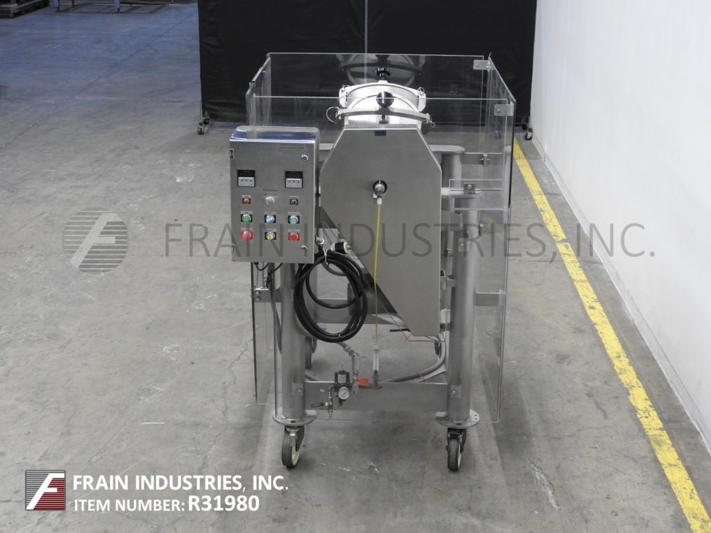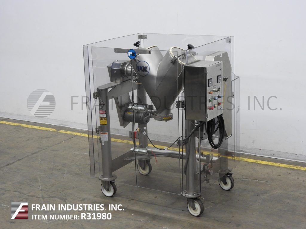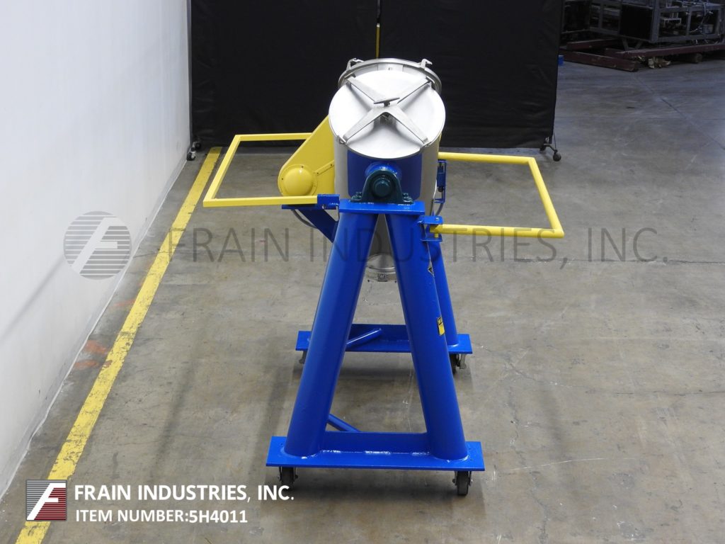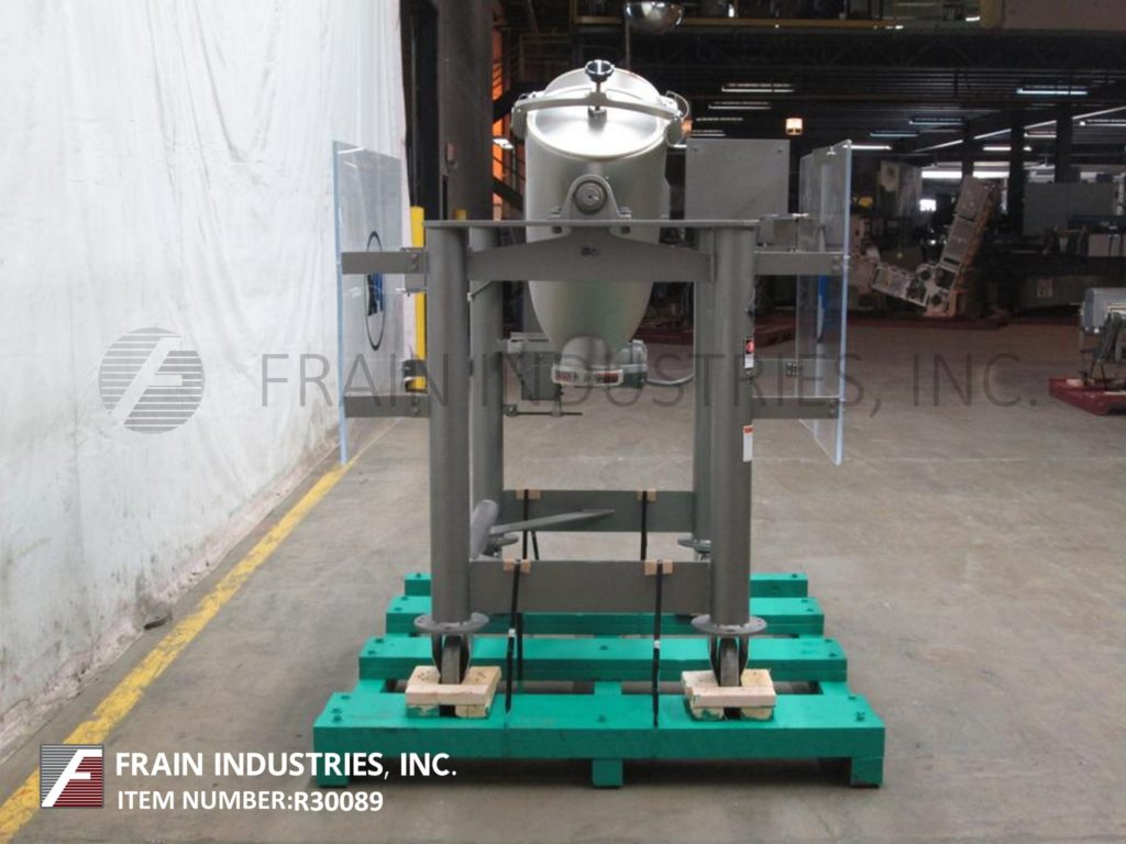 Patterson Kelly Model 3Ft³,交叉流量,316不锈钢双壳搅拌机,每FT³高达290磅 - 取决于材料和应用。配有(2)15“ID产品端口,具有快速释放销盖,(1)25”/(1)30“长边V墙和(1)7”/(1)11“长内V墙,6“ID Butterly阀放电,33”接地间隙,由1 HP驱动器提供动力。需要80“天花板间隙,带有23”摆动半径/ 46“的平行直径。启动/ e-stop /重置按钮,手/慢速/时间控制开关和数字混合定时器控制器。安装在绘画底架上的单位与lexan守护和脚轮。