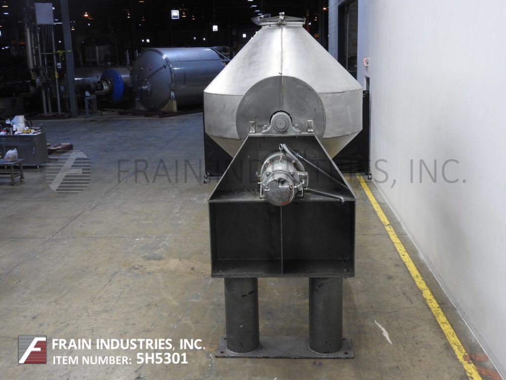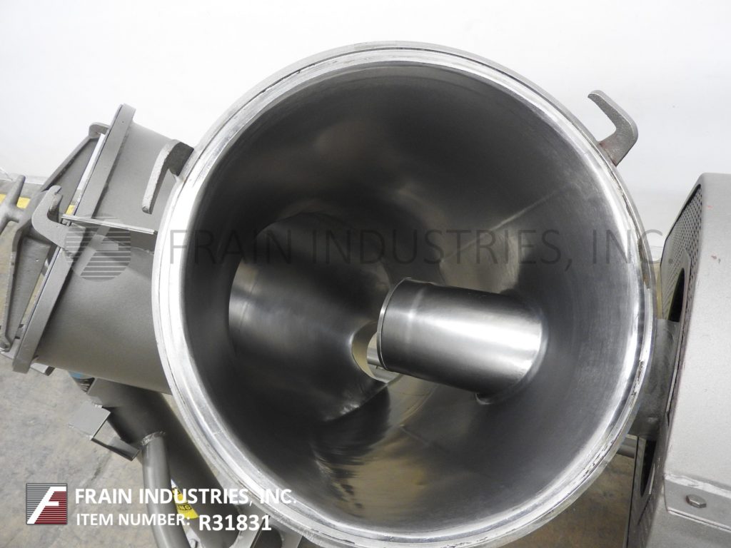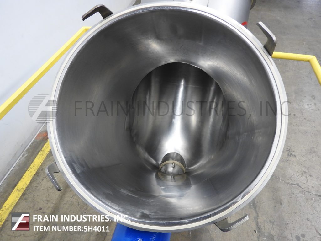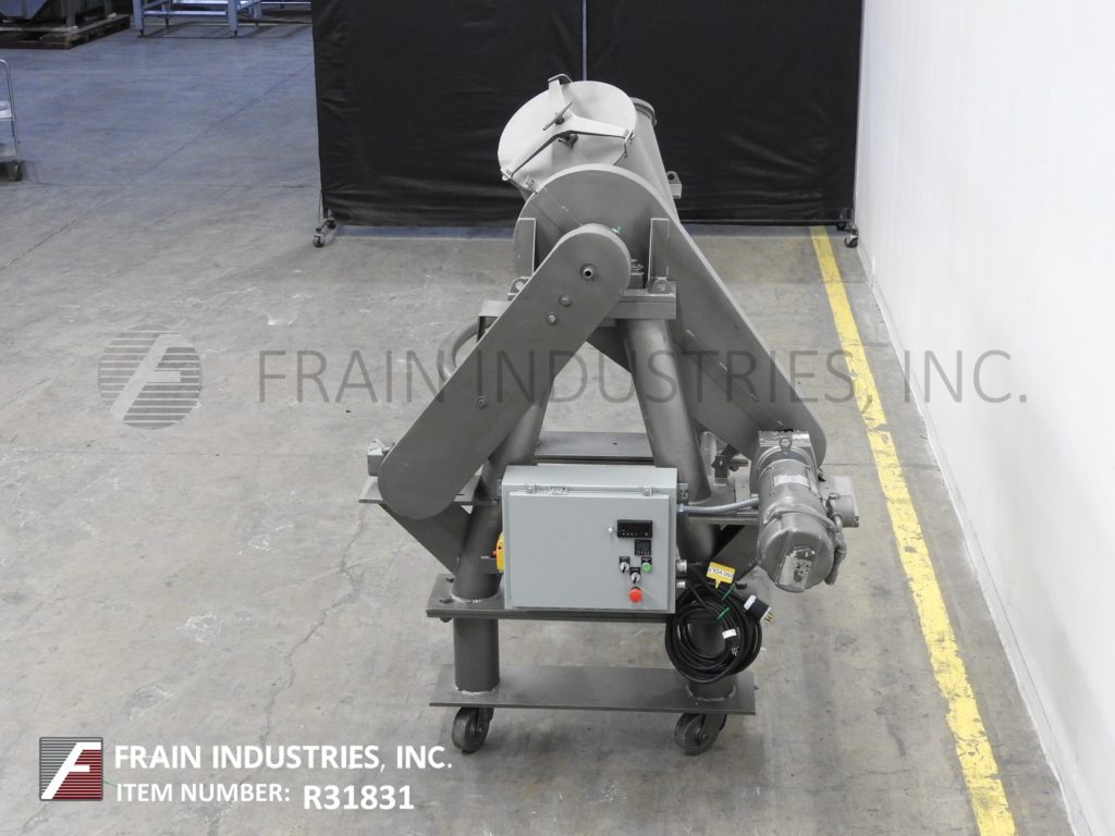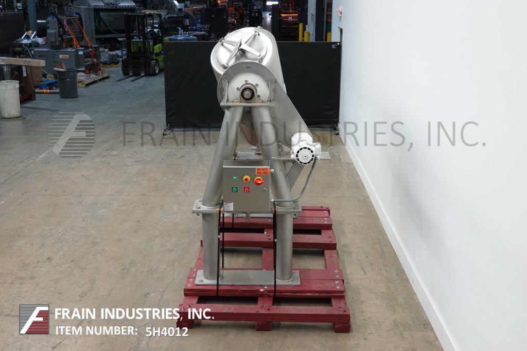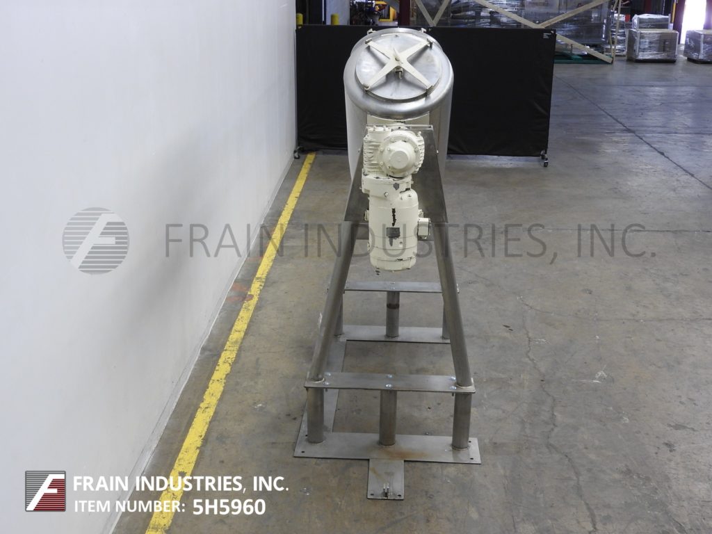 Patterson凯利10立方英尺,连续运动,V型之曲,扎格,固体搅拌机,每分钟磅和小时 - 取决于材料和应用。不锈钢接触部件,散装密度等级为每立方英尺50磅。配备10“直径,V样式之曲,ZAG运动混合段,在6-3 / 4”的旋转中,螺旋调节产品保留控制。混合器利用具有多个回收分裂的温和翻滚动作,并在混合器的每个部分中合并发生。安装在(4)腿重型框架上。