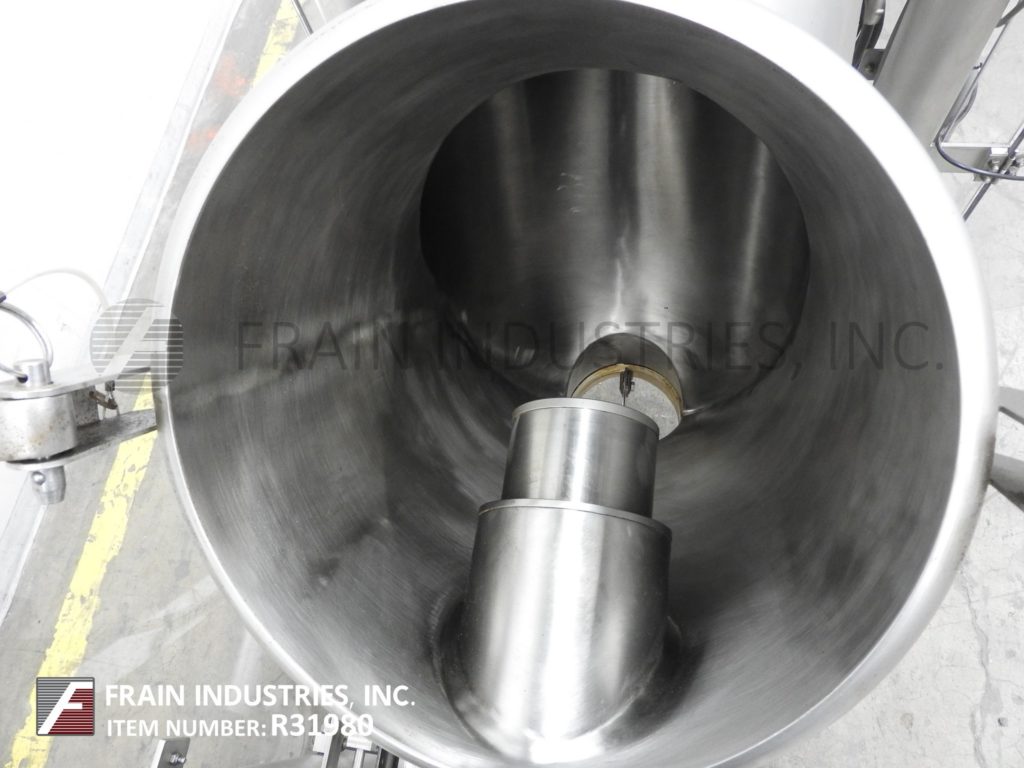 10英尺³,304不锈钢,双壳搅拌机。产品密度:高达55磅/英尺³。配备两个18英寸直径的入口,环氧树脂涂层内部,混合棒,和一个8英寸直径的排放与蝶阀。安装在加长的基座上。