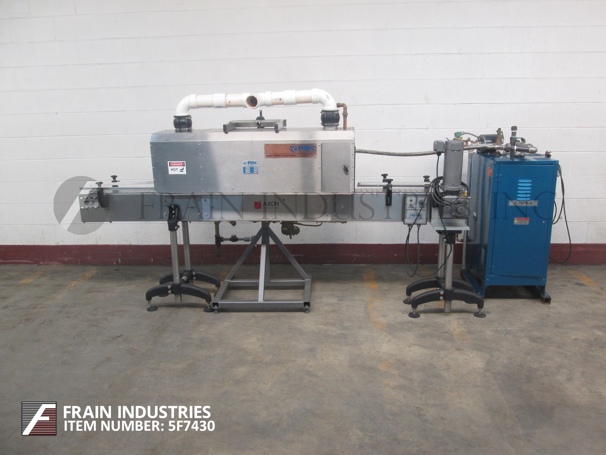 PDC型号R600,高速,不锈钢收缩套或颈带额定从50到600容器每分钟-取决于材料和应用。Layflat套筒尺寸范围:30mm(1.2")至100mm(3.93")宽;1"至6"高度,最小容器高度为3",能够运行PVC, PET和OPS的套筒膜从1.5毫升到2毫升。配备垂直穿孔轮,配膜装置,静电消除器,双膜卷远端膜架,动力放膜和21”外径的膜卷,出料传感器,膜张紧器和低膜指示灯。控制面板有A/B控制器和触摸屏操作界面,并有电源,点动,胶片,驱动停止和e-停止控制与静态灯条,不锈钢框架与联锁安全保护安装在现有的输送机上。