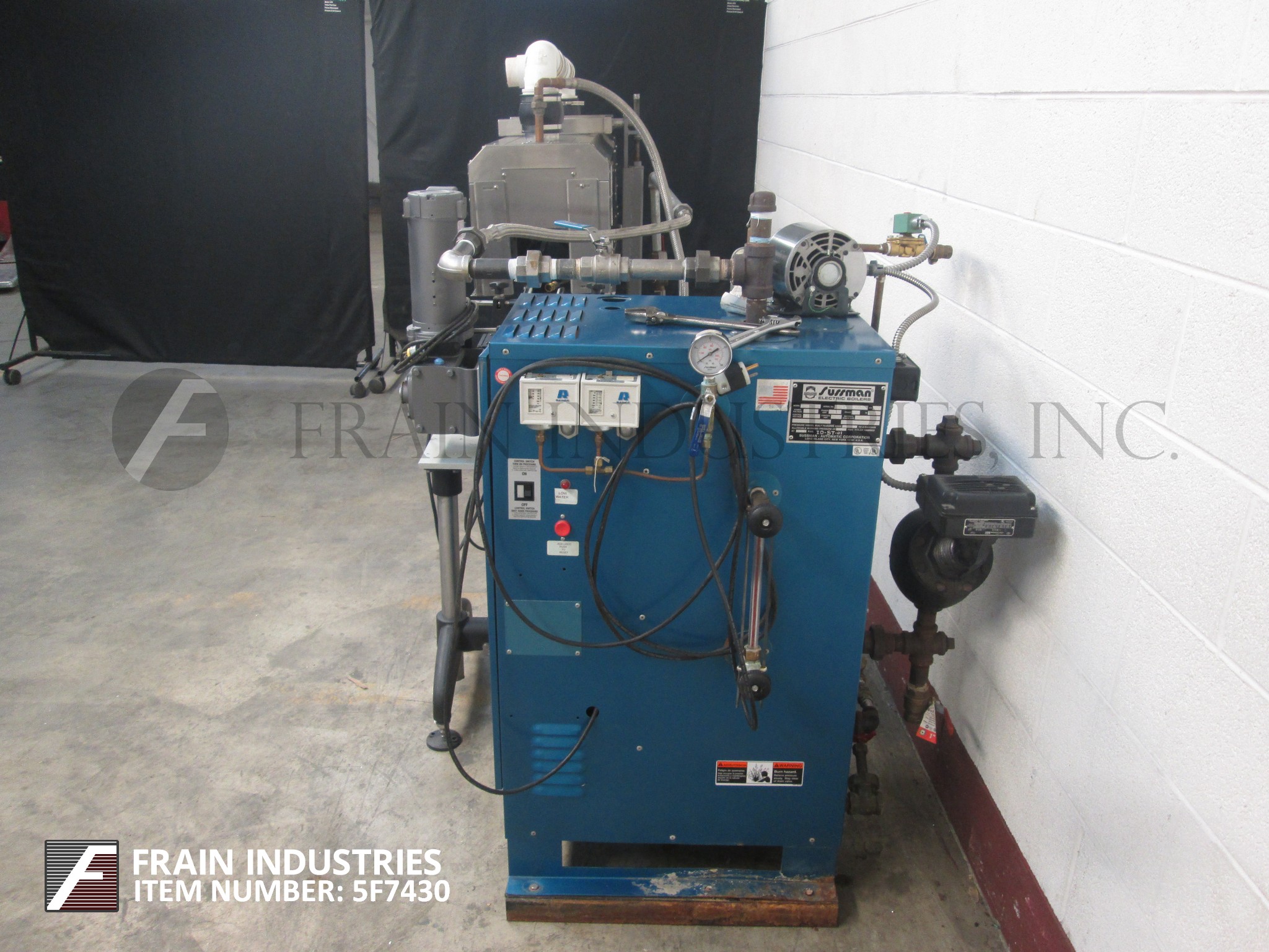 PDC型号KST 55-712,不锈钢,双区,蒸汽通道。配备7"宽;12“高aperature;55“长双区蒸汽室有5排管两侧,10行和可调节的蒸汽总经销商和安装在低碳钢底架与苏斯曼ES48电蒸汽发生器模型,48千瓦额定145磅的蒸汽/ 100 psi, 1/2“进水口,1”蒸汽出口。