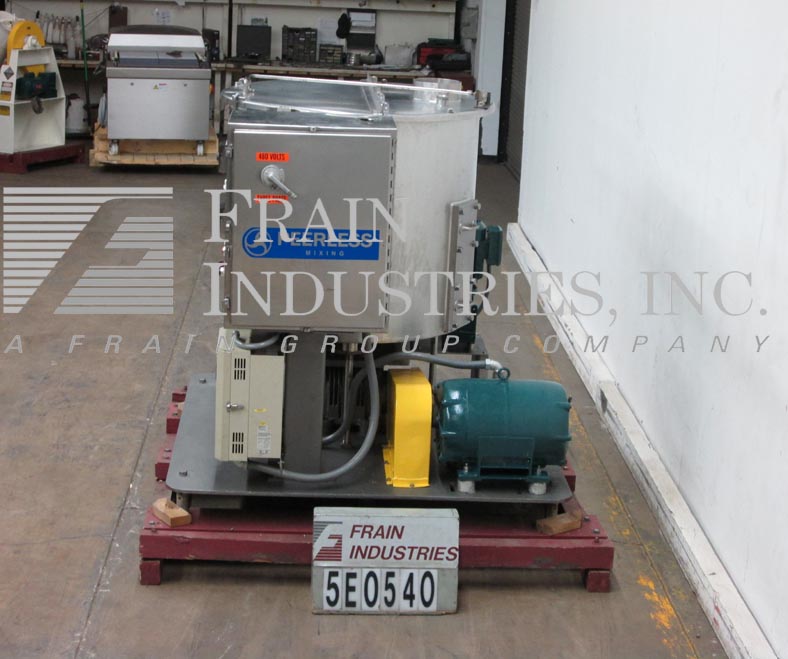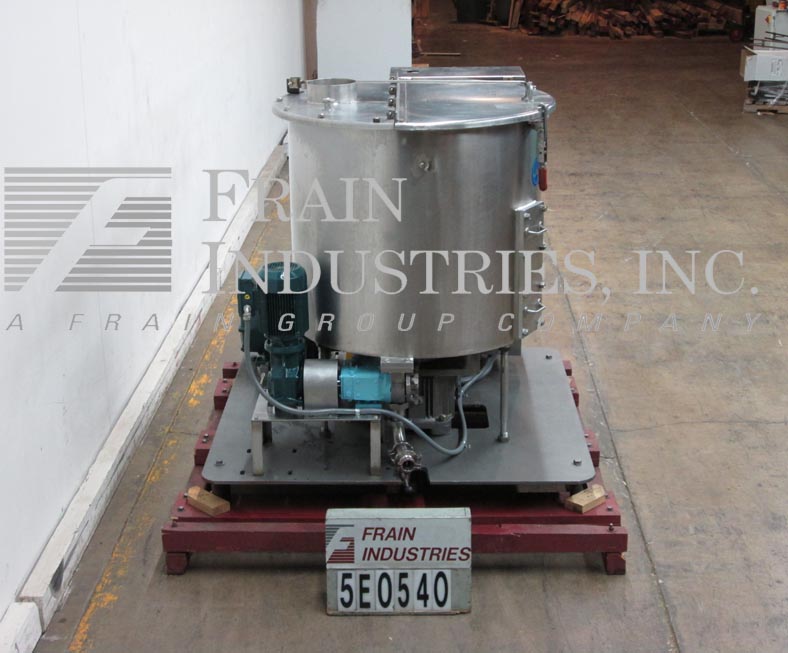 150加仑,(1000磅)容量,不锈钢,浆料混合器。(40“OD X 40深),平顶搅拌碗,具有底部电动转子驱动,具有5(38英寸L X 3”W X 1“厚)旋转单个运动混合刀片,8(18英寸L X 3“W X1”厚)固定式固定刀片,翻转顶部,螺栓向下盖,带快速释放夹具,9“DIA Product Port,并按下带循环定时器的按钮开始/停止控制。扁平底部具有底部矩形法兰泵,用18“楼层清洁有18”地板清洁,安装在共同的底板支架上,带有脚轮的移动性。
