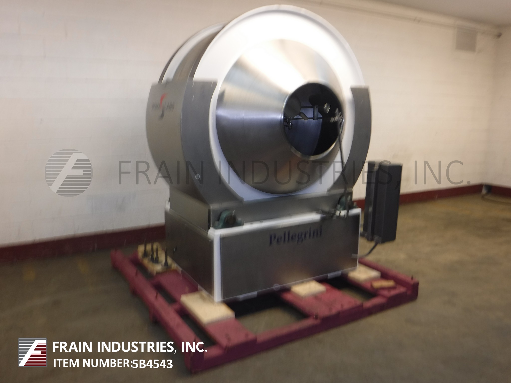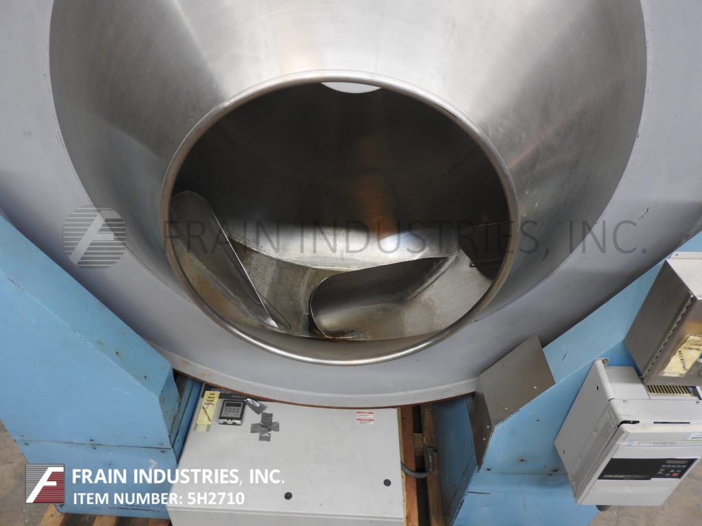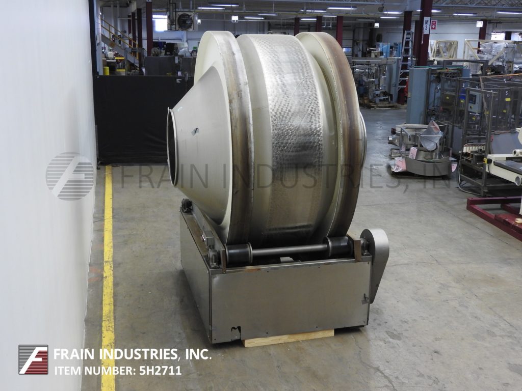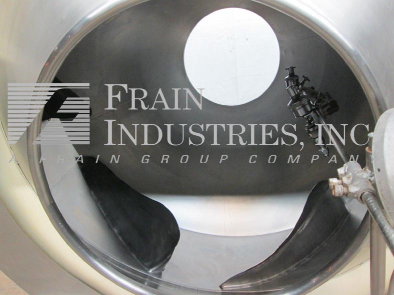 佩莱格里尼300升,60"直径,不锈钢涂层锅。配备两个20-1/2"直径的产品端口和8挡板。由2马力马达提供动力。安装在油漆钢框架上。
