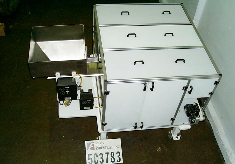 性能技术P197083, 30"直径饲料碗额定至- bpm,并在制药操作运行塑料瓶进入整体堵塞填料的最后操作。系统封闭在一个降噪室,包括一个24“x 24”散装进料料斗,OAD: 95“长x 50”宽x 50“高。