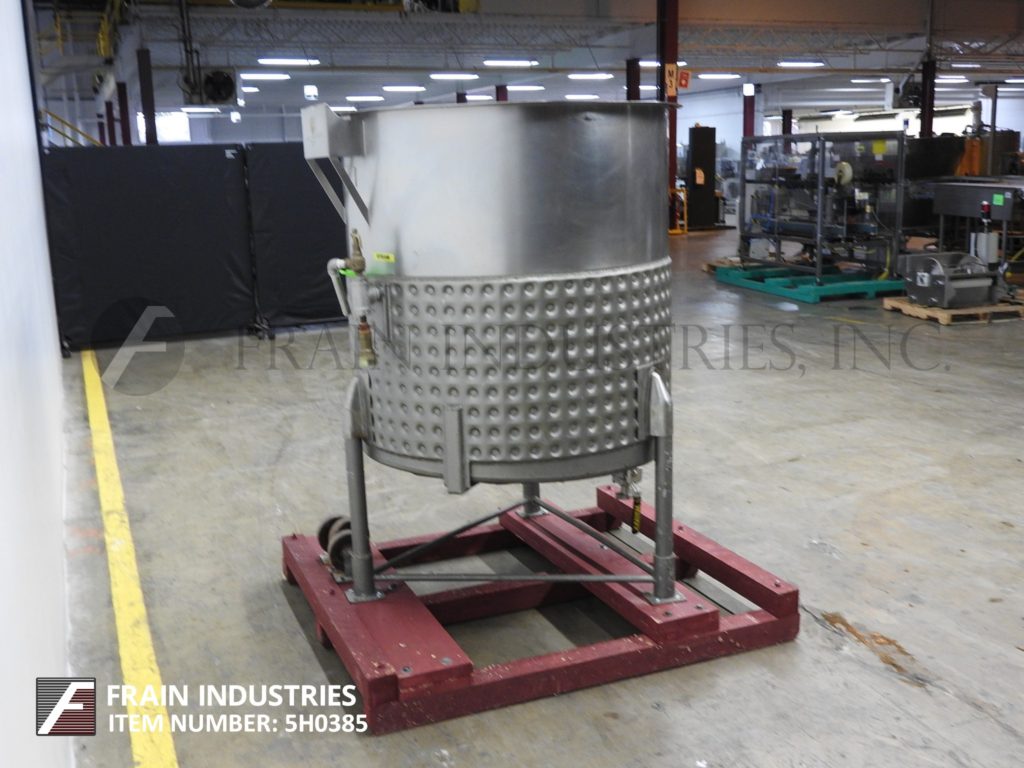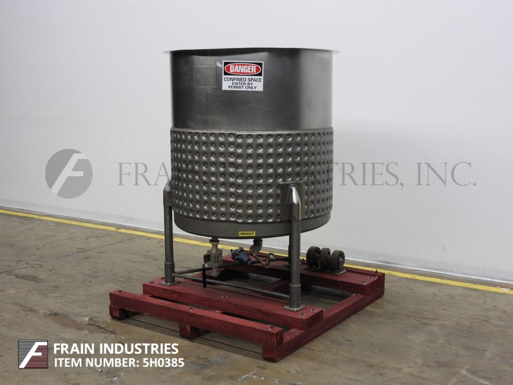 Perma SAD Model 305Jovs,305加仑,304不锈钢,凹坑夹克坦克。船舶尺寸:36“ID x 45”直墙。平顶有1/2档盖板和侧面安装的搅拌机支架。半侧和全底凹面夹克为55 psi @ 300 deg f,用(1)2“OD螺纹侧和(1)2”OD螺纹底夹克端口。倾斜底部有1-1 / 2“卫生侧底部放电,带有辉带阀和7”落地间隙。安装在(3)臀部的插座腿与脚跟。UL评级和国内董事会号码#2102。