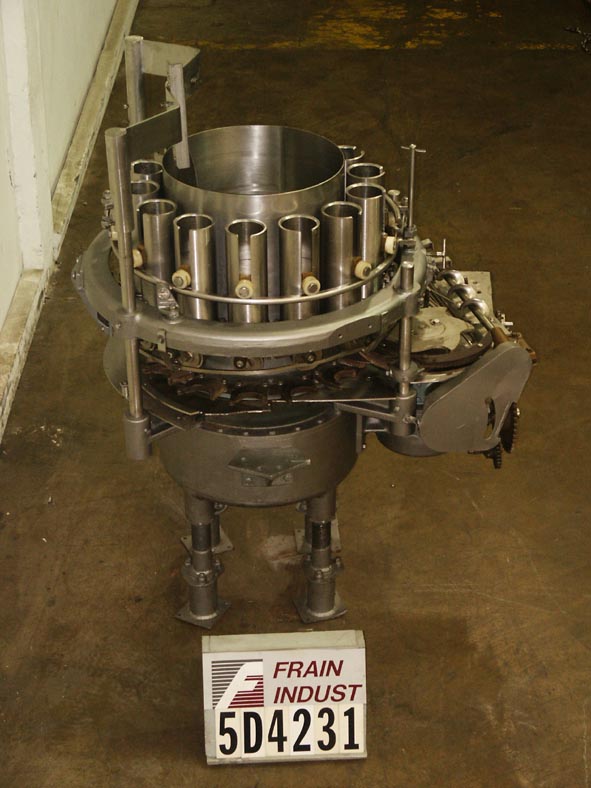 自动,10头旋转,不锈钢,从50到300个集装箱额定每分钟活塞填料 - 取决于材料和应用。尺寸范围:202至直径404;101到700中的高度。填写范围:高达52盎司。(目前配备有(10)40盎司活塞,3-1 / 2" 内径×15-1 / 2" H.单位接受活塞高达52盎司)与适当的变更的部件。装备有螺钉星轮进给时,7/8" 外径(3/8" 内径)的喷嘴设置在6-1 / 2" 的中心,没有容器/无填充特性,星形放电。变更部件所需要,以适应尺寸范围。
