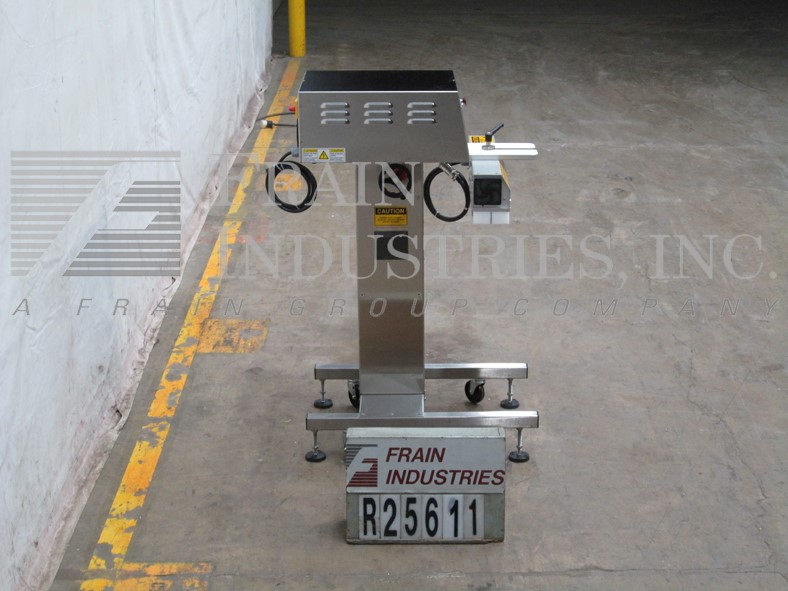 柱型一体机,紧凑,风冷感应密封系统从0到120英尺每分钟产品数量每分钟-取决于材料和应用。配备2kw风冷,不锈钢密封外壳,26"长x 5"宽扁棒密封头2-1/2"中心线,可密封从15mm到120mm的瓶盖。微处理器控制,触摸板控制器和e-stop。安装在手动曲柄可调,便携式支架,与脚轮和水平腿。