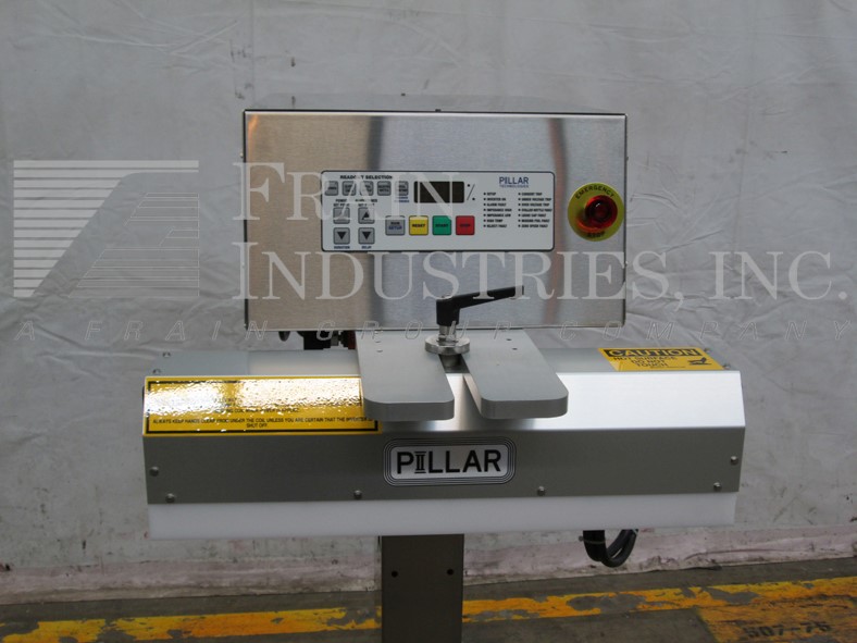 柱型一体机,紧凑,风冷感应密封系统从0到120英尺每分钟产品数量每分钟-取决于材料和应用。配备10'L x 4.5"W S/S输送机,2kw风冷,不锈钢密封外壳,26"长x 5"宽扁棒密封头2-1/2"中心线,能够密封从15mm到120mm的瓶盖。