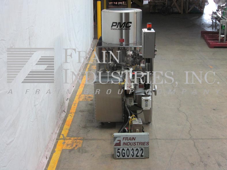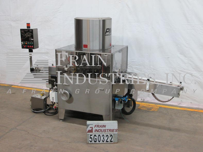 PMC, XRC1200型,12头,旋转,手指泵插入和压盖机额定为30至180个容器每分钟-取决于材料和应用。安装在重型框架与高度可调腿和安全门保护。