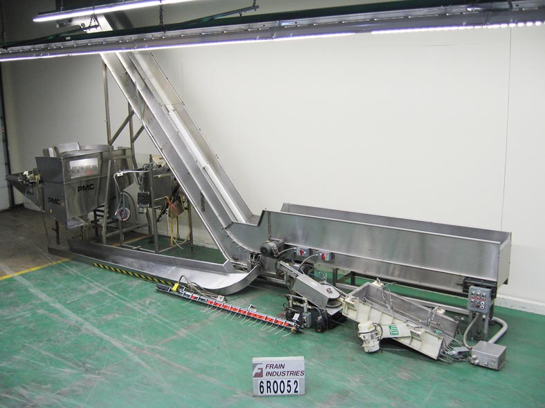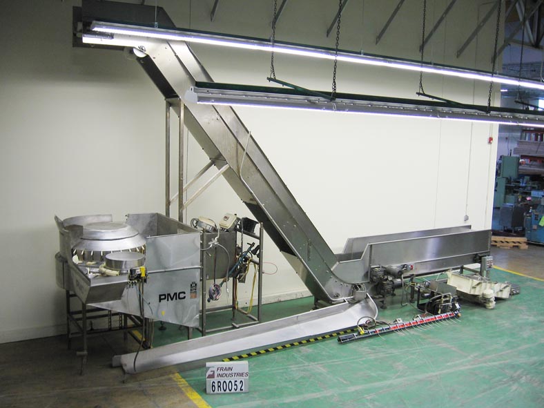 PMC型号BS2100/HS-48,自动,散装触发式盖给料机和分选系统,额定转速从16至24转,盖的数量取决于材料和应用。配备模型bs - 1200给水系统,116“长x 20”宽批量供应本进料输送机,到252年“长x 20”宽帽给料机提升倾向于模型HS-48触发泵盖与48分选机”OD横盘,特别设计的垂直挡板分离和东方触发与浸渍管帽,所有不定向的盖下降到158“长x 20”宽的过剩盖返回溜槽回到输送散装供应料仓,以重新馈电,并定向。安装在重型框架上。