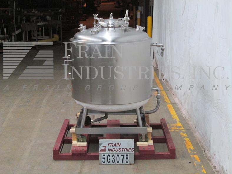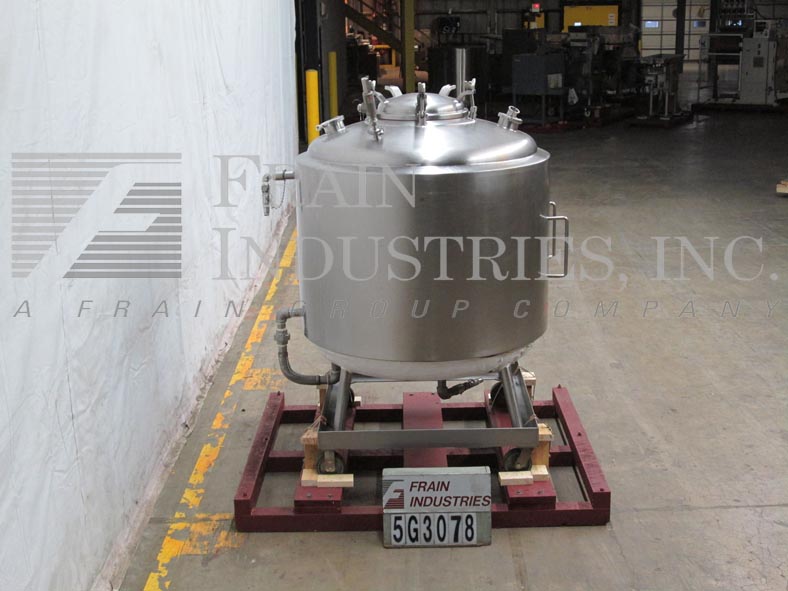 精密不锈钢300加仑316L不锈钢真空额定夹套罐。船舶尺寸:48“直径; 37英寸”直墙。压力额定值:夹克50 psi @ 250°F;真空30 psi @ 250°F配备圆顶顶部,18英寸的圆形通道,铰接式螺栓向下盖,(1)2“OD顶部卫生,(1)2.5”OD顶级卫生,(1)5“顶级卫生,(1)3“OD顶部卫生配件;(1)1-1 / 4”侧夹套螺纹配件,(1)2“侧夹套螺纹配件,(1)2”底夹套螺纹配件;绝缘的盘子底部有2“螺纹中心底部放电,13”接地间隙。安装在带脚轮的不锈钢框架上。