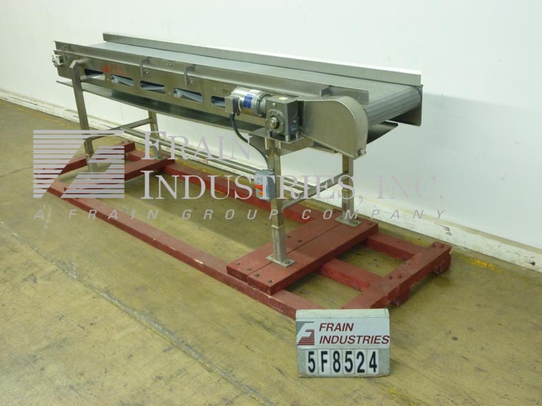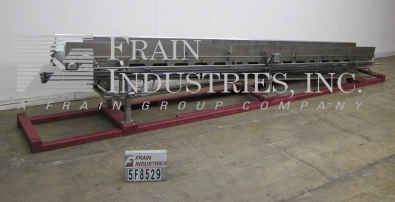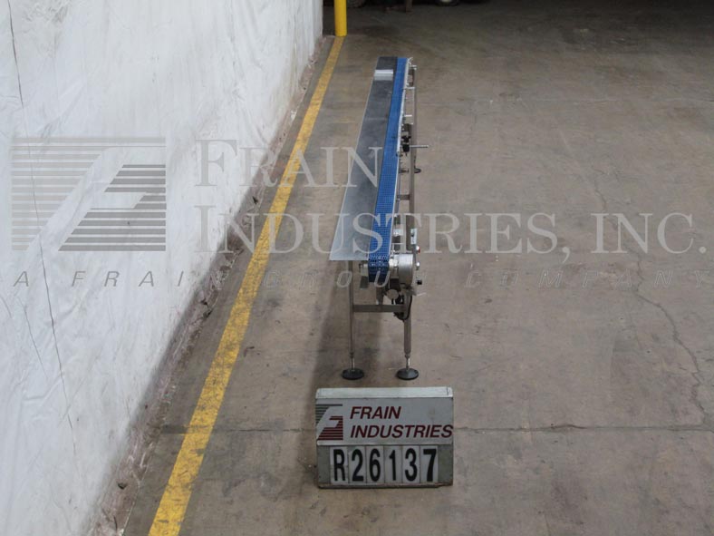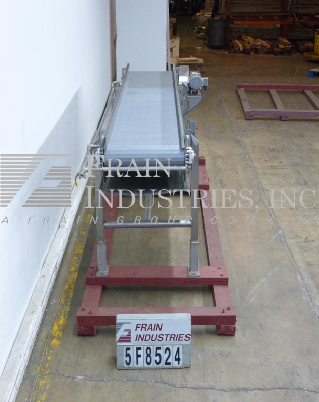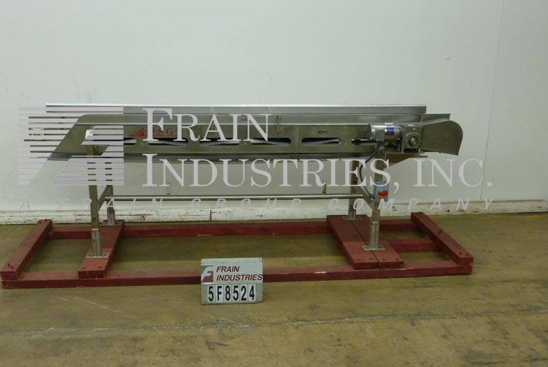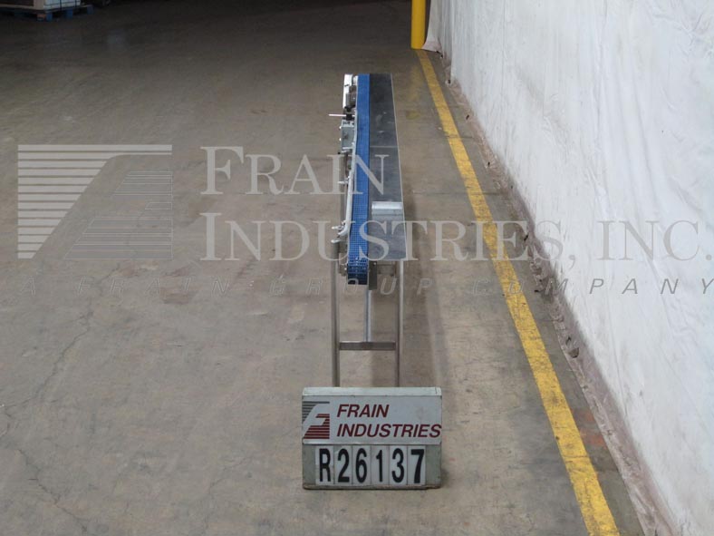 PSG柔性连杆检测输送机。3英寸宽和169英寸长带6英寸宽不锈钢检验/包装侧。动力由0.33马力驱动器和35"放电高度。