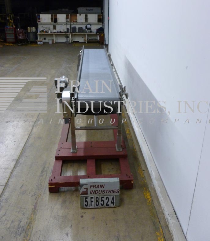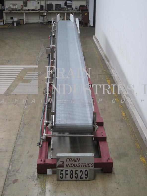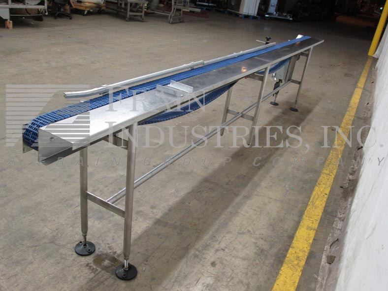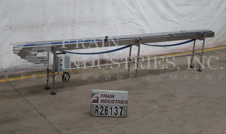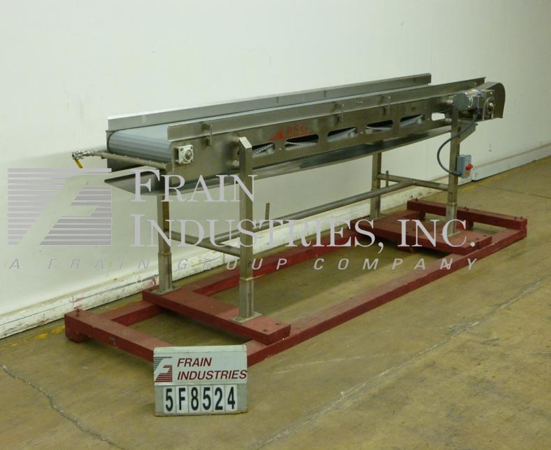 PSG Dallas, 156"长x 24"宽,不锈钢,塑料带式输送机。配备1马力驱动,启动/停止控制,和4英寸高不锈钢导轨。