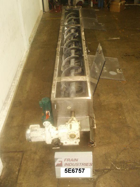 55立方英尺304 S/S 1/2夹套连续流动带状搅拌器。功能一个224"(L) x 20 1/2"(W) x 23"(D)混合室与4 1/2" W轴,3"宽19 1/2"直径。丝带。配备2.4马力欧洲驱动器电机,联锁lexan防护,(2)3/4“卫生入口,(3)6 3/4“卫生入口磁过滤,和一个排放槽测量15”(长)x 11”(宽)。该装置被设计为连续混合产品,同时将其从混合器的一端运输到另一端,允许连续添加配料,以及通过夹套加热或冷却。