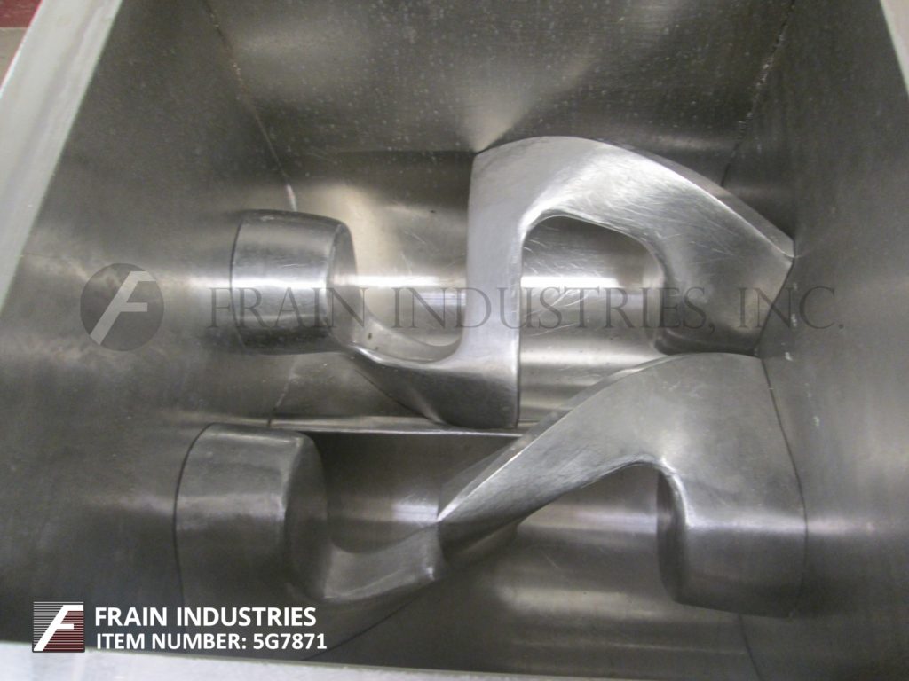 5立方英尺,连续运动,304不锈钢双西格玛叶片搅拌机。腔室尺寸:直径22英寸;20“的长度。叶片尺寸:直径10英寸;20“的长度;2”宽。压力等级:M.D.M.T. 100 psi @ 350°f配备一个20"长x 8"宽的进口翻转顶部盖和不锈钢网覆盖,两个混合叶片,和一个3"直径中心底部卸料手曲柄阀。