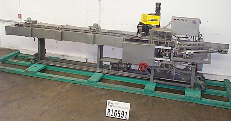 规格-半自动,垂直,连续,中心6.00",纸箱范围- D 2.50" x 9.00", W 0.75" x 4.00", L 0.75" x 5.00":速度可达120 cpm。三链单元有一个延伸的框架。配有一个6 ' 7"长x 4" W画布放电传送带。浮雕编码器的顶部皮瓣可在增加'L成本6,500美元。附送传单的收费为$15,000。