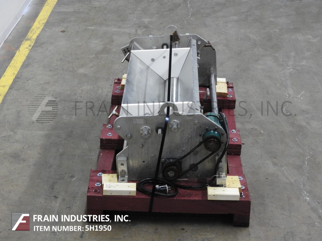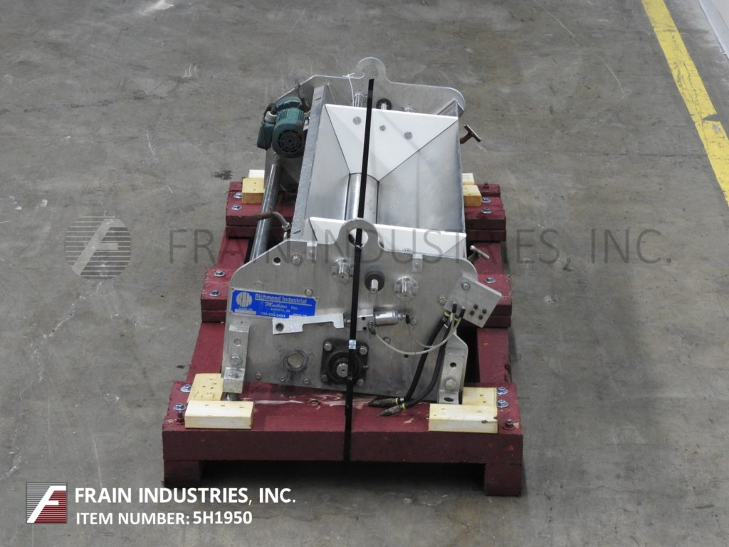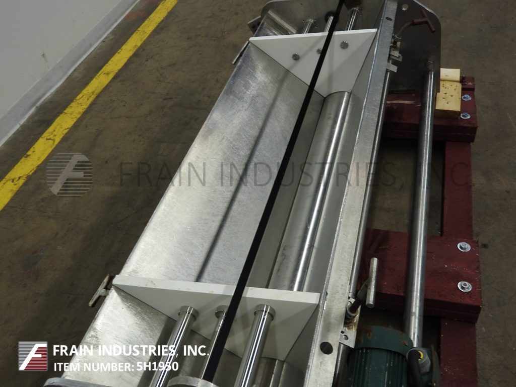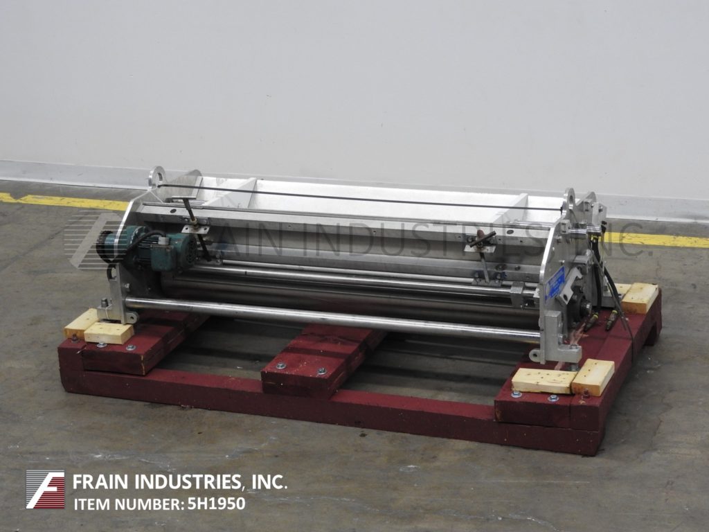 里士满工业,460A型,不锈钢辊式结冰器。配备了一个60“宽x 15”长x 8“深槽与一个8“直径底部旋转转移滚筒可调宽度表面覆盖到58”宽。由1 / 2 Hp驱动。