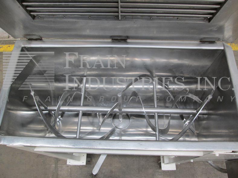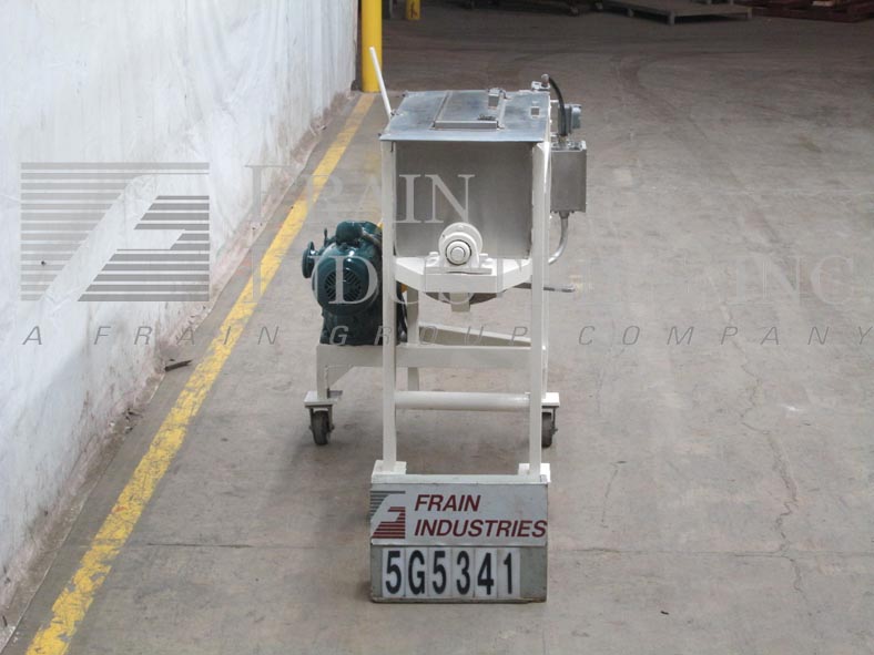 罗斯,30英尺(27英尺可行),双带搅拌机,带304个不锈钢接触部件。内部混合室尺寸:60“长度; 29”,宽度;33“深度。配备纸张,通风罩,抬起磁性格栅,安全开关,2½”直径电机轴,2½“直径混合轴,宽(外)和2英寸宽(内)x 3 /8“厚不锈钢丝带。6“直径中心底部放电具有气动滑动阀和炉排盖,带有32”接地清除,10小时电机,带有起动/停止控制开关,安装在温和钢(4)腿基架上。
