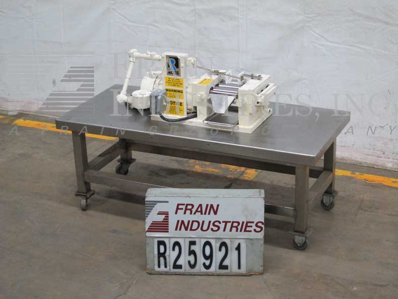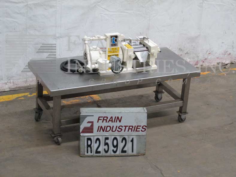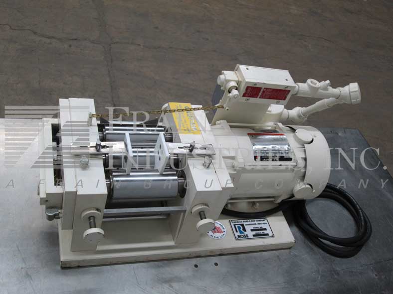 罗斯,模型2½“x 5”TRM,3辊实验室分散磨机。辊尺寸:2½“直径和5”的长度。107 RPM后辊,214 rpm中间辊和428 rpm前辊。配有管道滚筒,配有(1)3/8“入口和(1)3/4”放电。(4)手动滚动间距调节,3½“长挡板,滚子盘下的2英寸宽排放,5英寸”x 9“和滚子。