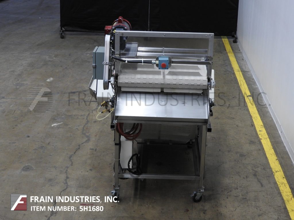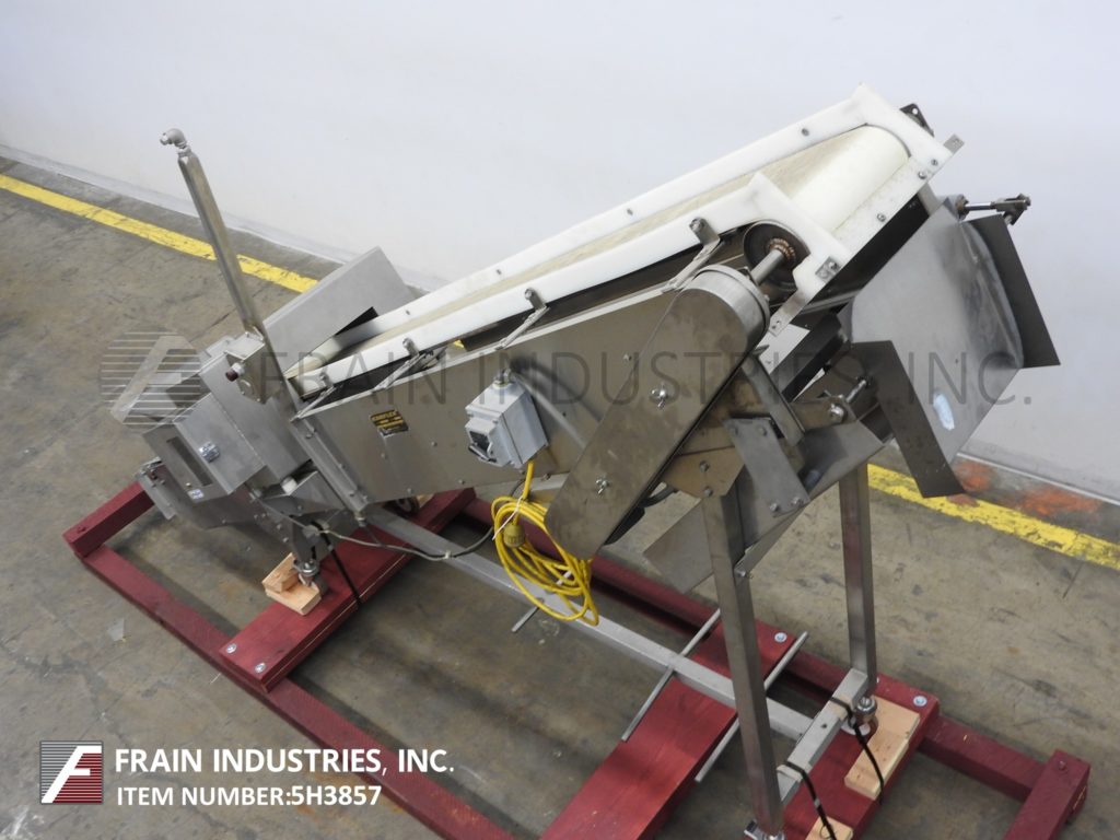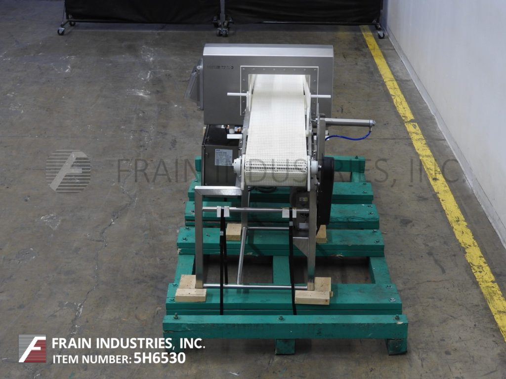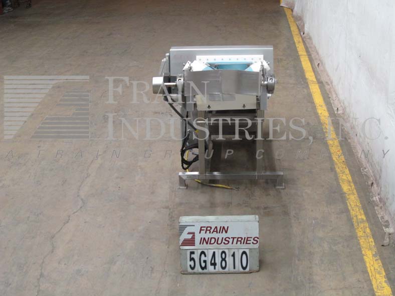 Safeline,型号PPH金属探测器,16"宽x 4"大口径。灵敏度等级:1.5mm铁;1.5毫米有色;2.0mm不锈钢根据材料,应用,环境和机器配置而定。配备14“宽× 108”长的斜v型槽带式输送机。全不锈钢结构,28英寸高进料和56英寸高出料。由交流驱动的1HP齿轮马达驱动。控制面板与启动/停止/复位按钮和输送速度控制。安装可选乌谢尔切割机/切片机。