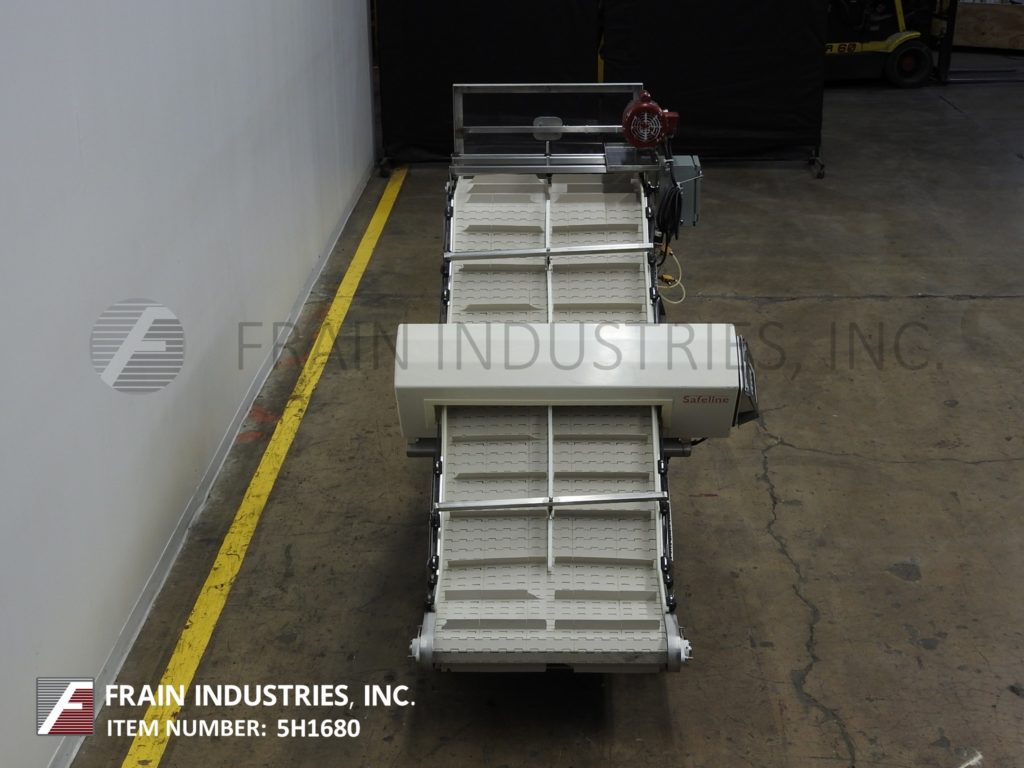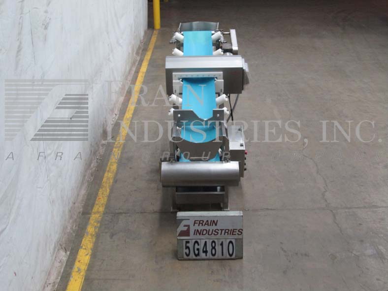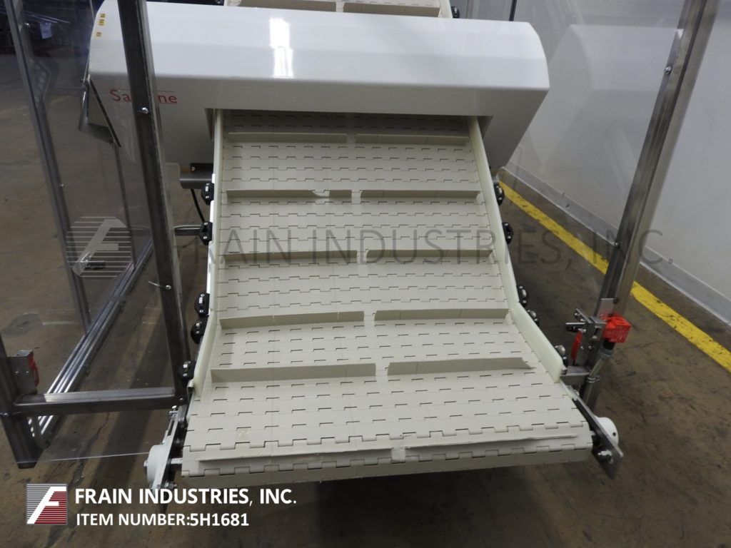 Safeline,型号PowerPhase Plus,通过金属探测器的自动输送机,每分钟的产品数量–取决于材料和应用。孔径:2¼”高;宽度为32¼英寸。配备30“宽夹板倾斜内斜带式输送机,在10”中心设置1½“高夹板,进料高度为8”,机械分流斜槽带收集箱,离地间隙为36”。灵敏度:取决于应用和运行环境。控制面板具有触摸板操作员界面和启动/停止按钮。安装在带有脚轮和lexan防护装置的基架上。