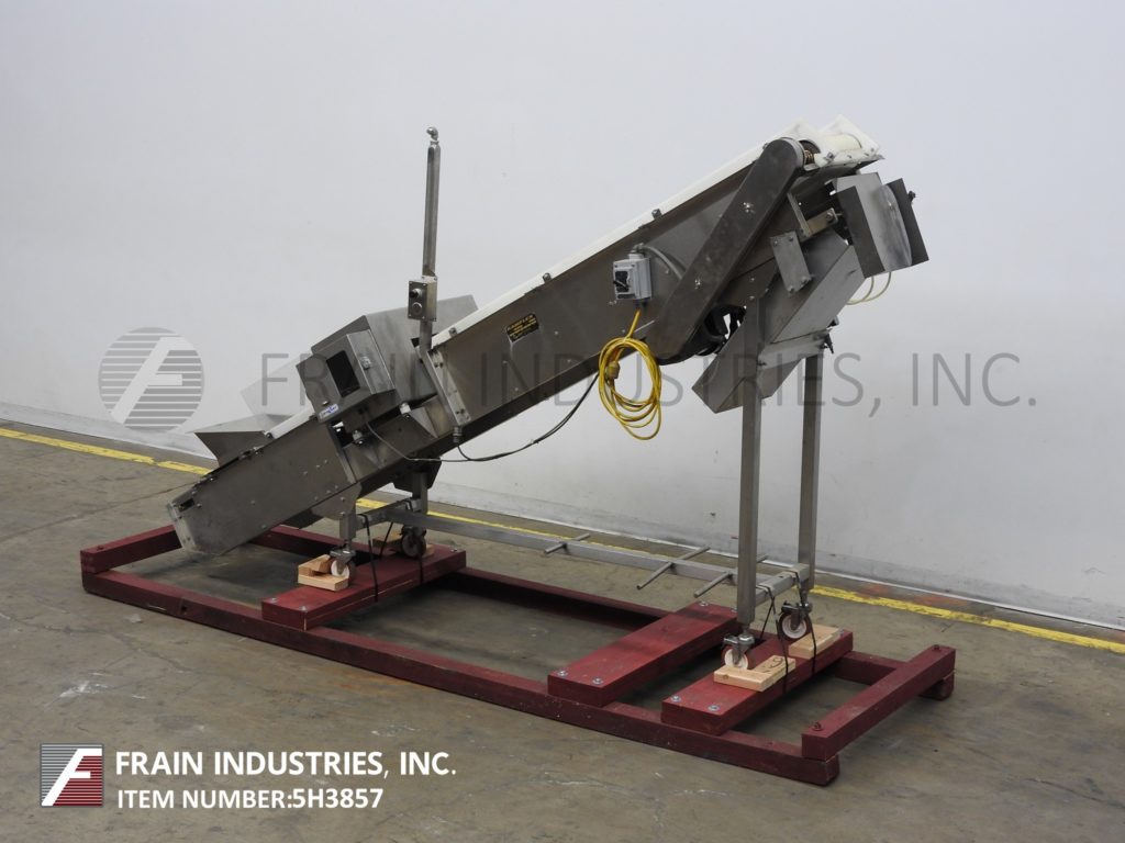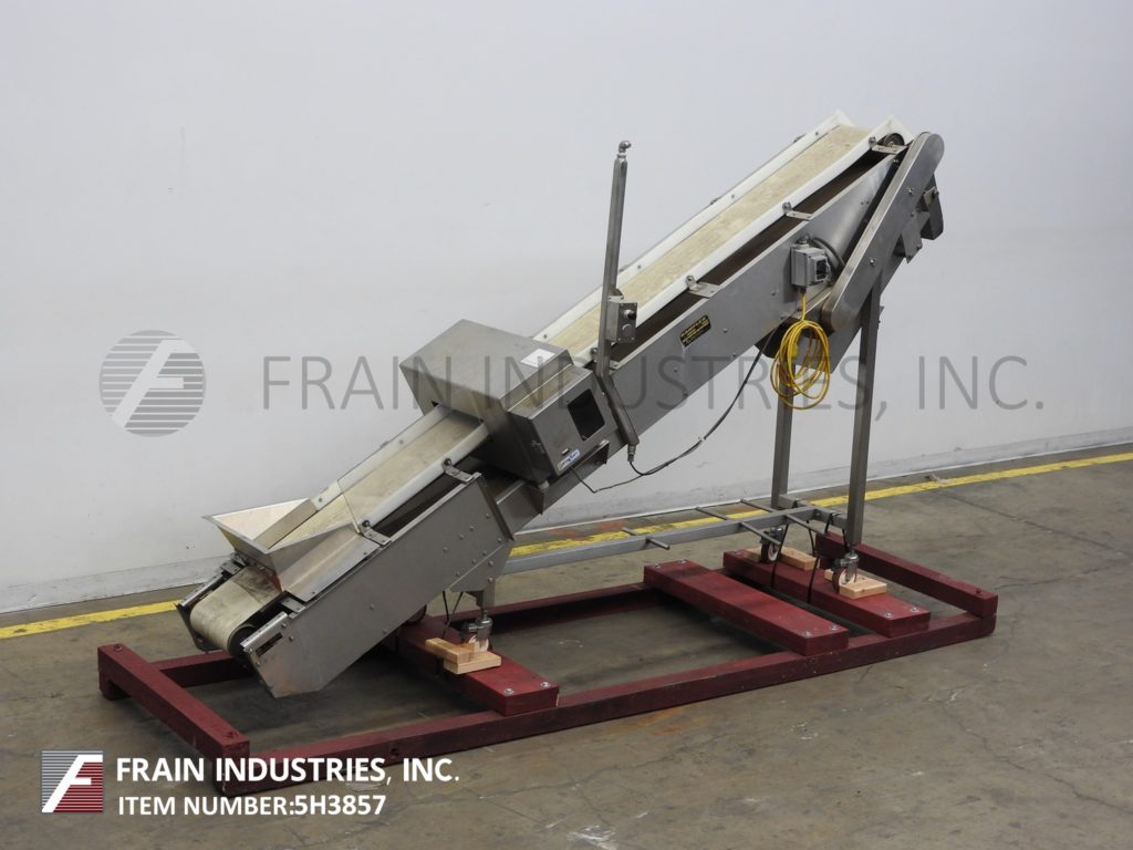 Safeline,STD型,通过金属探测器的自动输送机,每分钟产品数量-取决于材料和应用。孔径:3½”高;宽度为15¾英寸。配备Kamflex 12”宽斜氯丁橡胶带式输送机,带18”宽x 12”长x 8”深料斗,装料高度为21”,卸料高度为76”,带机械分流溜槽。敏感性:取决于产品、容器和运行环境。控制面板具有触摸板操作员界面和启动/停止按钮。安装在带有脚轮和lexan防护装置的基架上。