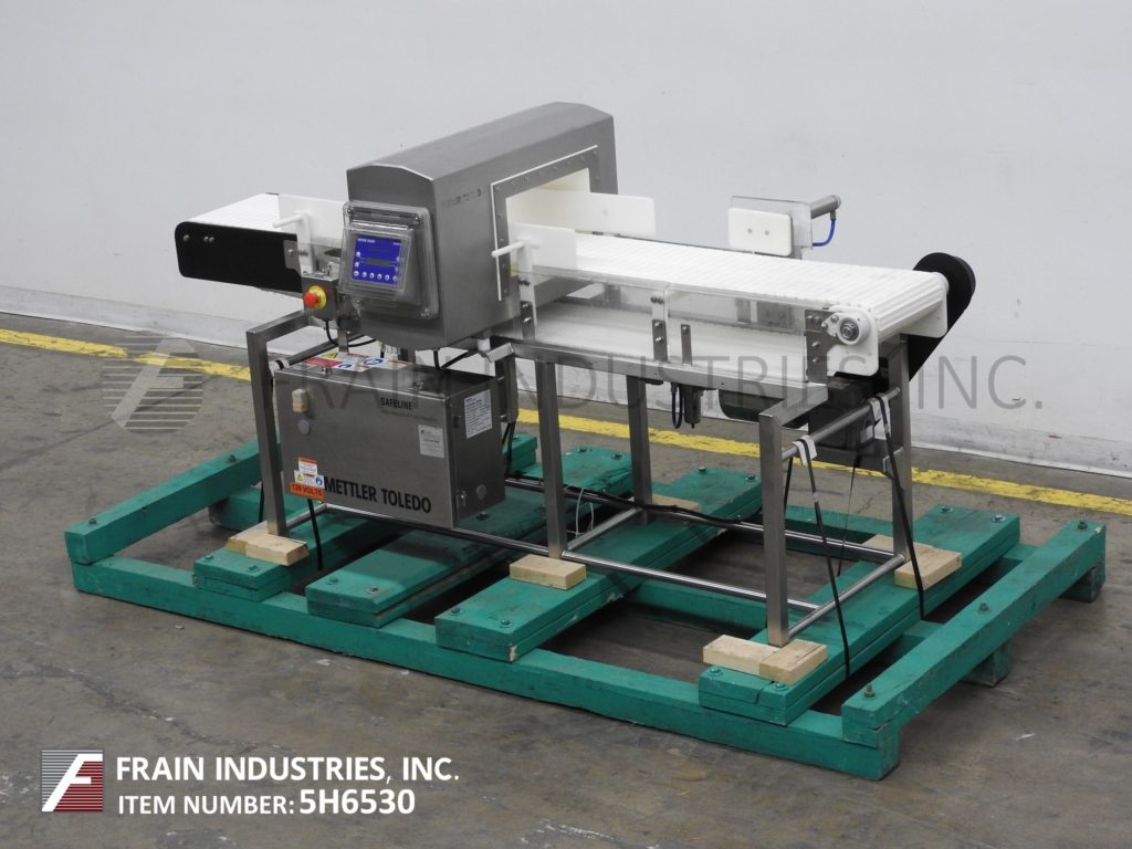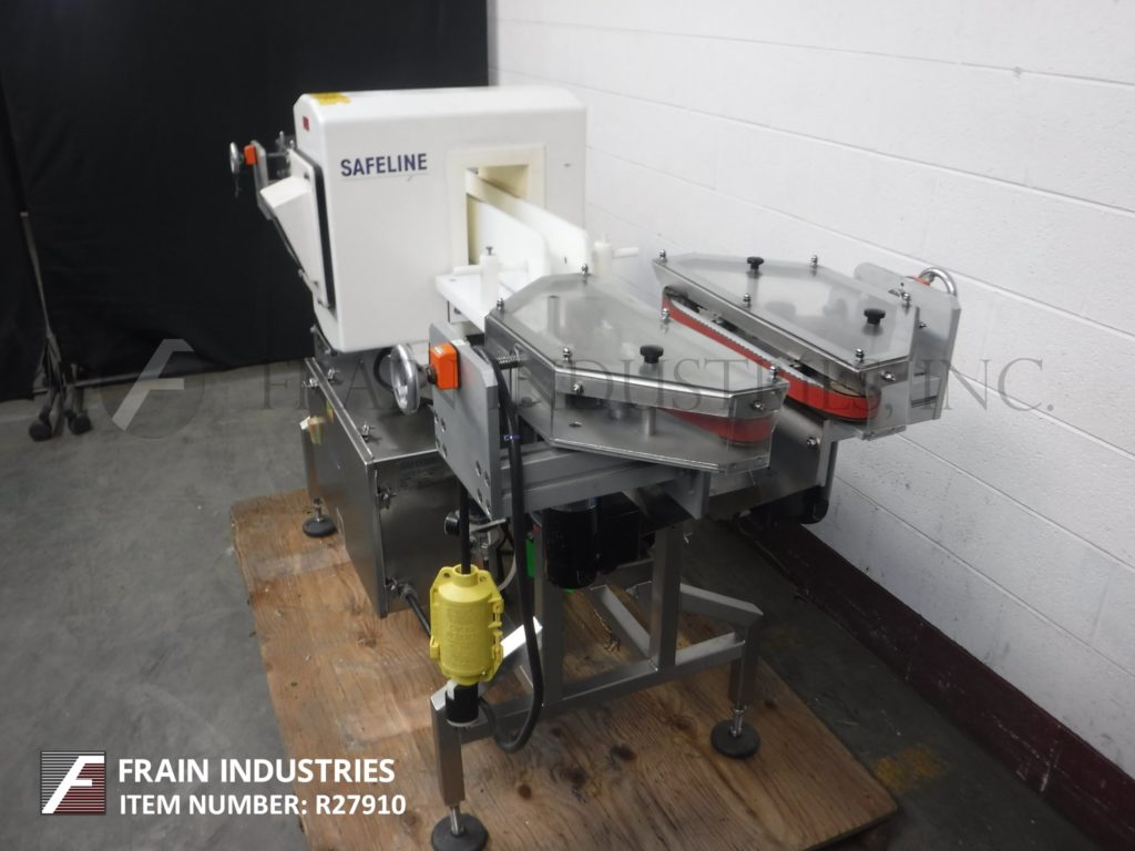 Safeline标志STD,自动金属探测器,额定为每分钟10到60英尺,产品数量取决于材料和应用。工作光圈:高度6.75";13”宽。配备SL1500型,72"长x 12"宽柔性连杆输送系统,4"高x 39"L导轨,气动滑块拒绝。敏感性:取决于运行的产品、容器和环境。触摸板操作界面与视觉显示。安装在不锈钢框架上,高度可调螺丝调平腿。