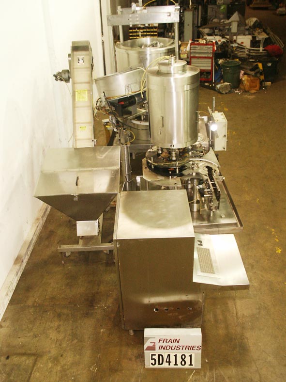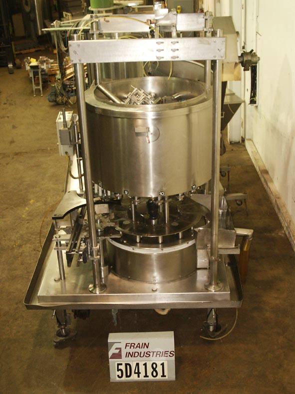 自动S/S 4头旋转卡盘盖。型号为V4/360,根据材料和应用的不同,可以达到120 cpm。配置一个排水沟,没有容器,没有盖子,单独的摩擦盘扭矩控制,并设置在11英寸中心。