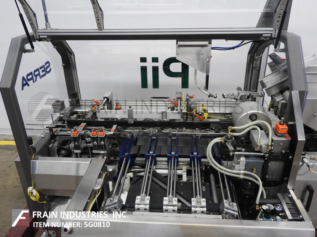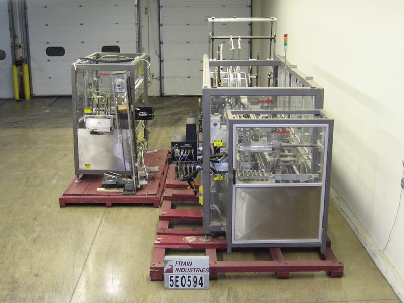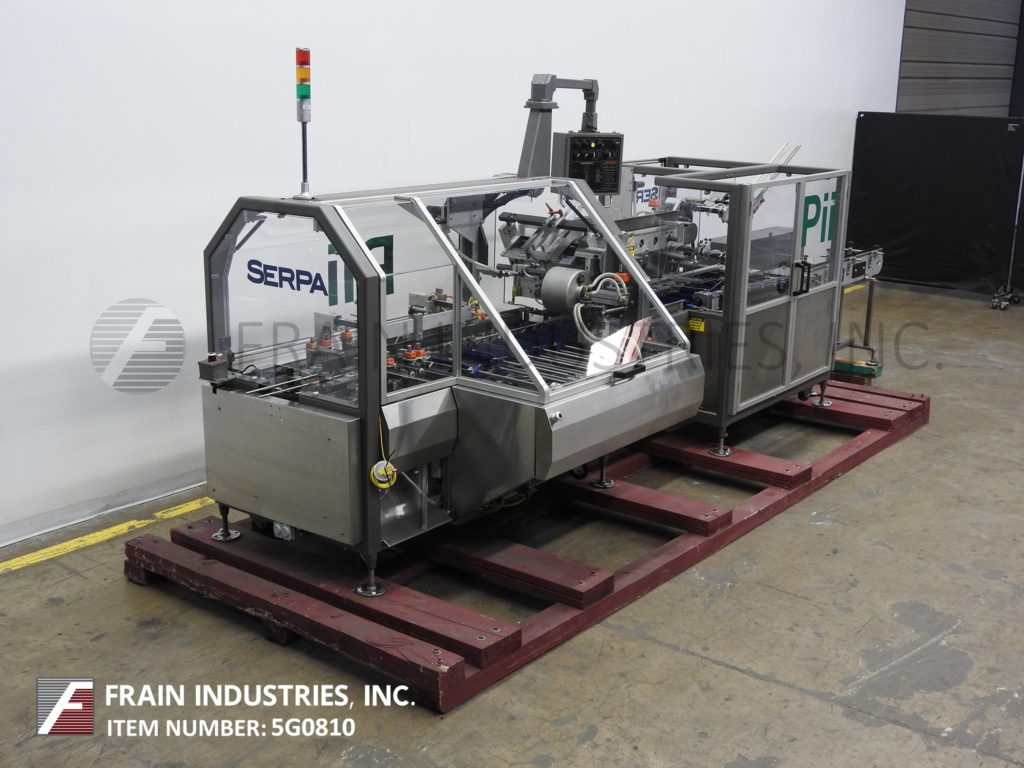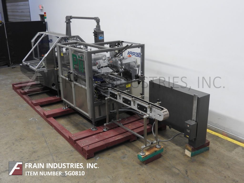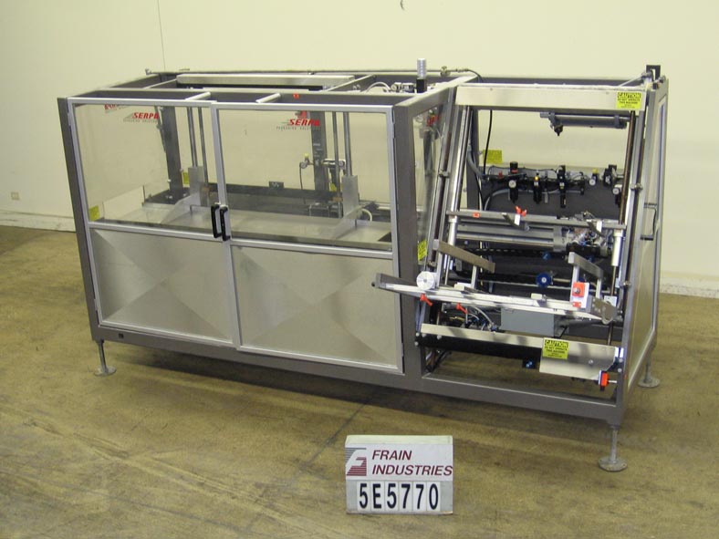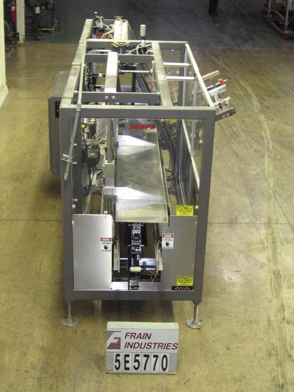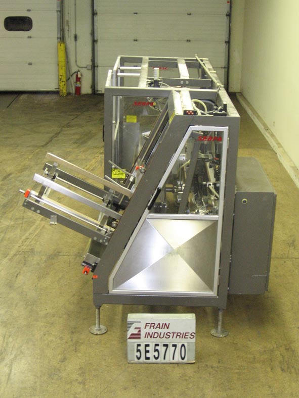 SERPA型号250CE,自动案例竖立,底锥度。案例尺寸范围:10“至18”的长度;5“到14”的宽度;高度为5“至24英寸”。配备空白纸箱杂志,真空电皮PICA,销钉套件运输输送机,顶壳方格装置,2“底部磁带头,A / B PLC,A / B VFD,伺服驱动器,SEIKO仪表,E-STOP和安全保护。安装在高度可调节的腿上。