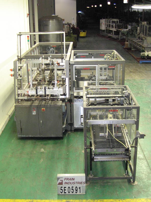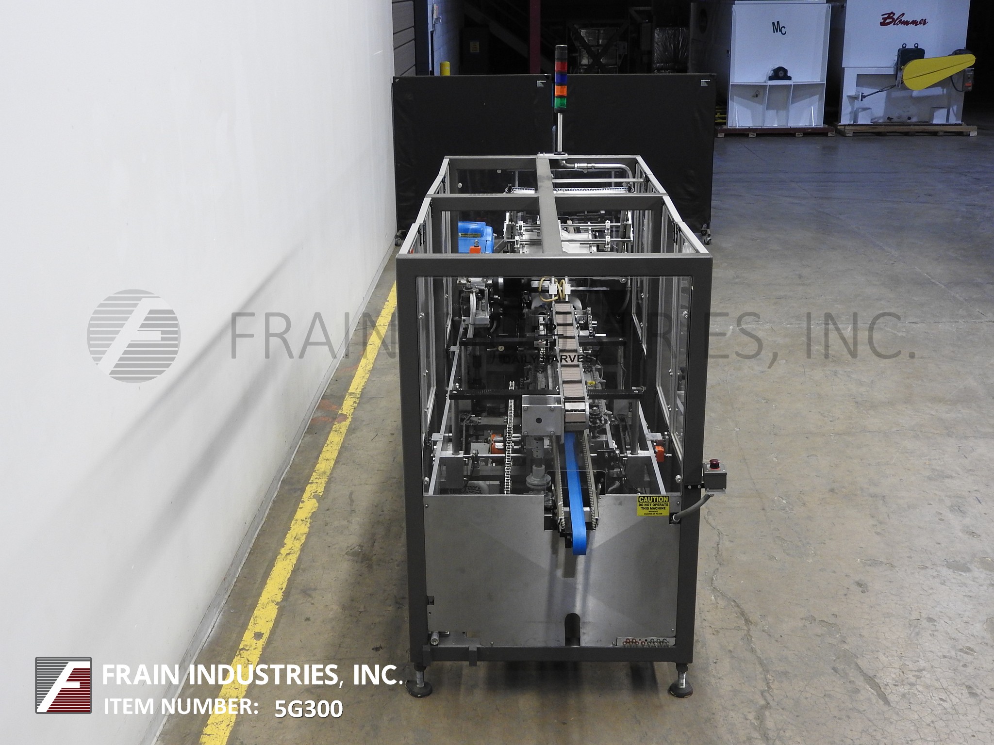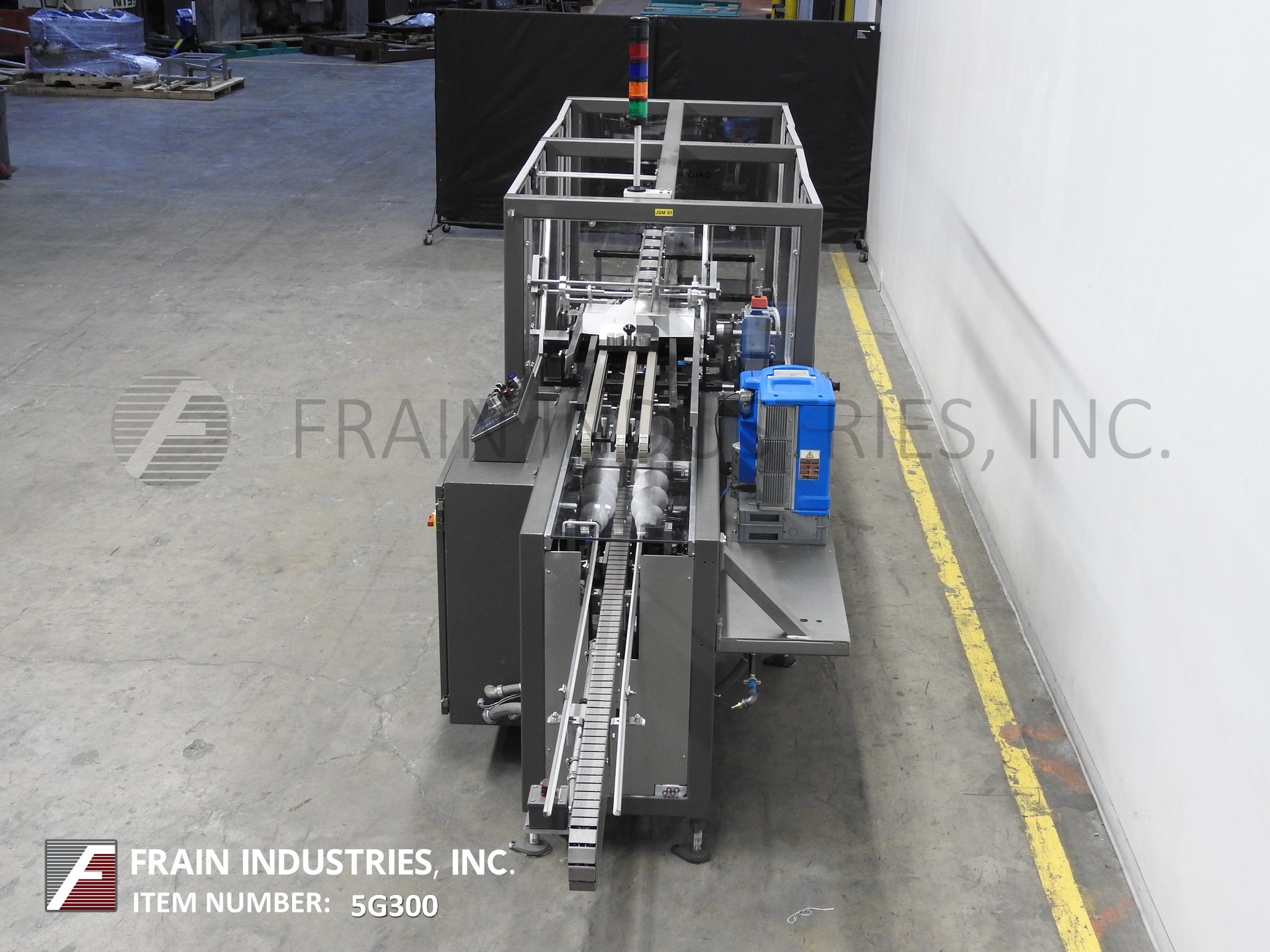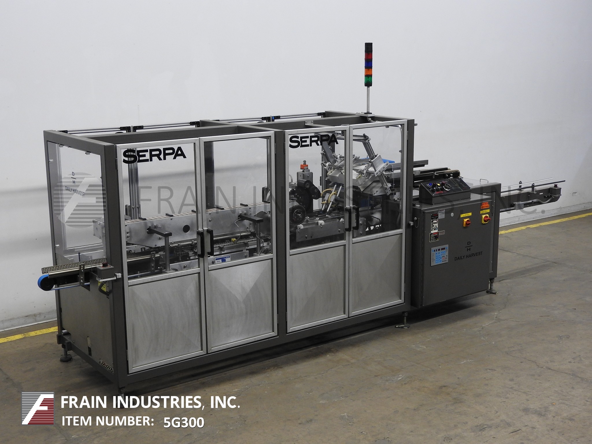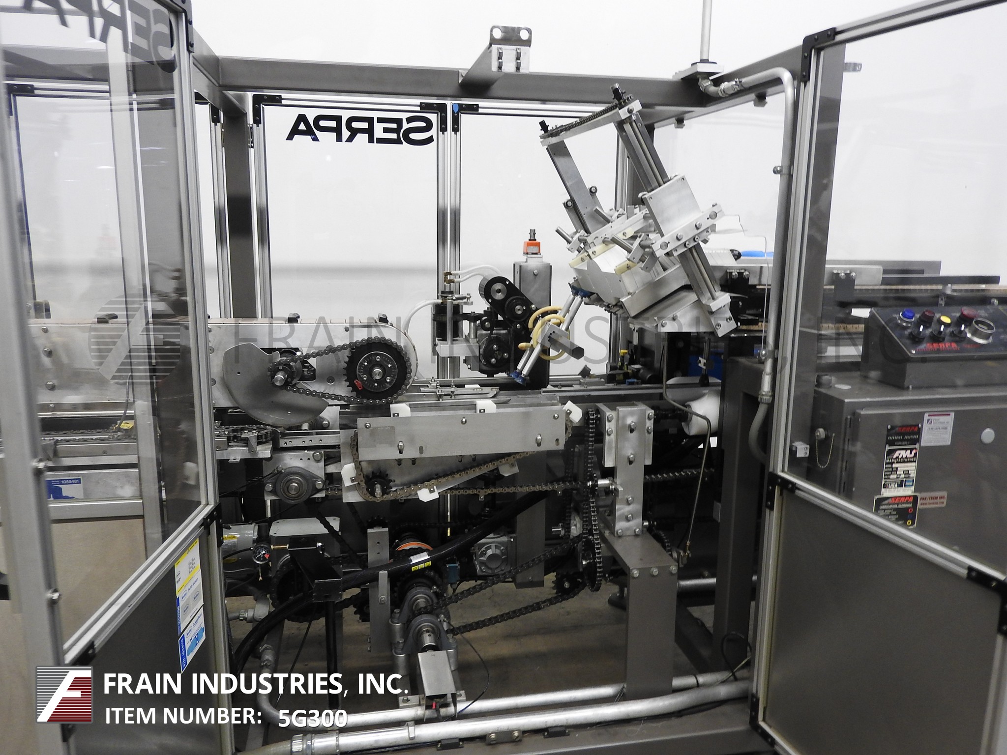 SERPA型号250CE,自动案例竖立,底锥度。案例尺寸范围:10“至18”的长度;5“到14”的宽度;高度为5“至24英寸”。配备空白纸箱杂志,真空电皮PICA,销钉套件运输输送机,顶壳方格装置,2“底部磁带头,A / B PLC,A / B VFD,伺服驱动器,SEIKO仪表,E-STOP和安全保护。安装在高度可调节的腿上。