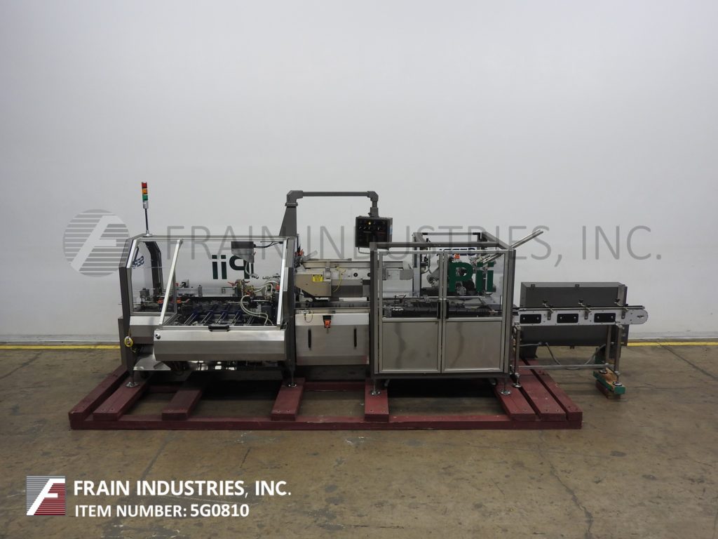 自动,S / S,缠绕,H / M,表壳包装机能够速度最高20次CPM - 取决于应用程序。4链可调单元设置在21“中心,2”W X 6“H凸耳和壳体尺寸范围:5” - 18“L X 5” - 14“W X 5” - 24“D,有48“l x 40”w x 60“H动力,空白盒杂志,带3个吸盘纸盒PIC-n-Place,14'L x 9”W产品进给式输送机,带有下屑器,气动推动式载荷,和55“l销钉顶壳,缠绕襟翼辅助压缩部分,Nordson(5)枪H / M系统和双30“L X 5”H侧滚子排出输送机,以及一个Pnuematic,单臂,壳体排出RAM,A / B控制器有6000系列PLS触控垫控制器和数字读数,带互锁的障碍防护。