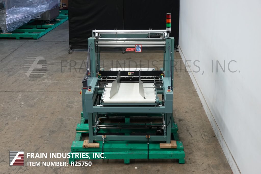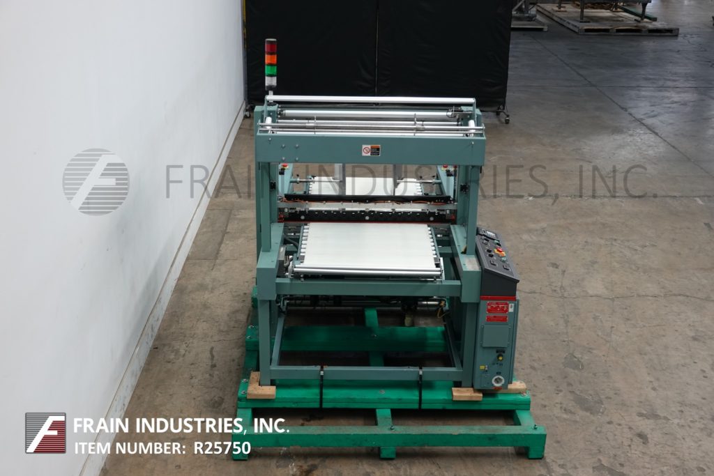 尚克林F1型,自动连续运动,流经收缩包装中心文件夹额定从10到50包或60线性英尺每分钟-取决于材料和应用。包装尺寸范围:6“到48”在长度x 2“到16”在宽度x 1/8”到3 1/2“在高度(高达5”高与适当的变化部分)。最大薄膜尺寸:22英寸折叠或44英寸平放。该装置配有标准的薄膜unwind,折叠薄膜卷,打孔机,顶部和底部的加热丝边密封,热刀切断,固定犁,和手动曲柄/扭转旋钮调整。双进料输送机和带式出料输送机。安装在脚轮上便于移动,并具有废料清除系统。包括艾伦·布拉德利公司。