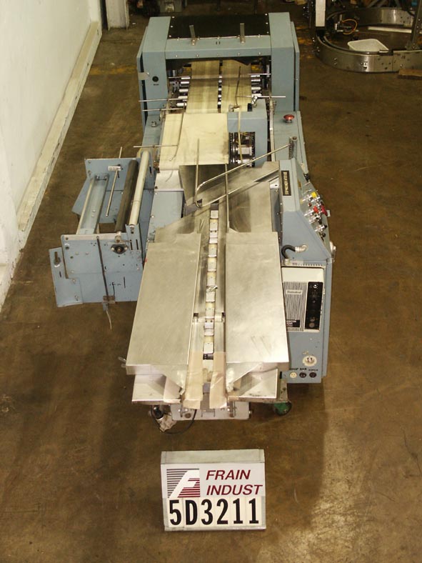 Shanklin型号HS-1,自动,水平,流量通过收缩包装额定到120直线脚或40至100个每分钟封装 - 取决于材料和应用。封装尺寸范围为6“至60”;宽度为1/2“至16”;1/8至6“高度。配备108”长双链销上的饲料输送机上,在17-12“中心,带有4”高凸耳的侧膜辊,可以处理最大薄膜宽度为28“长×12”直径。18“长时间脉冲密封钳口,侧封口,废轮薄膜去除和双带排放传送带。控制面板有A / B PLC带触摸板控制器启动/停止,周期,慢跑,顶/底/底/侧/侧热封控制,速度控制拨盘,e-stops。安装在重型基础框架上。