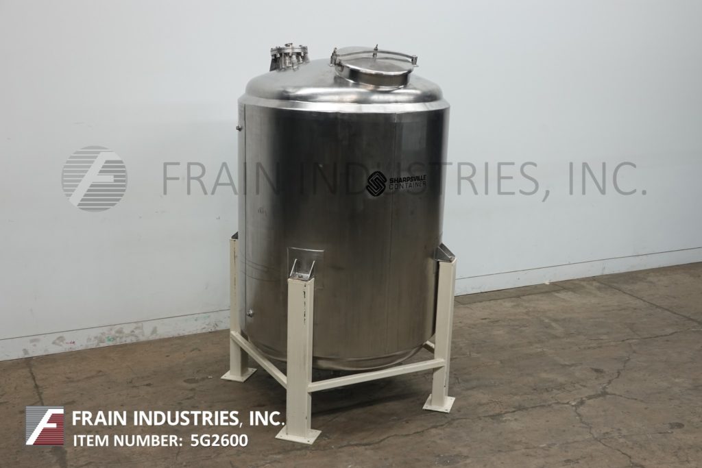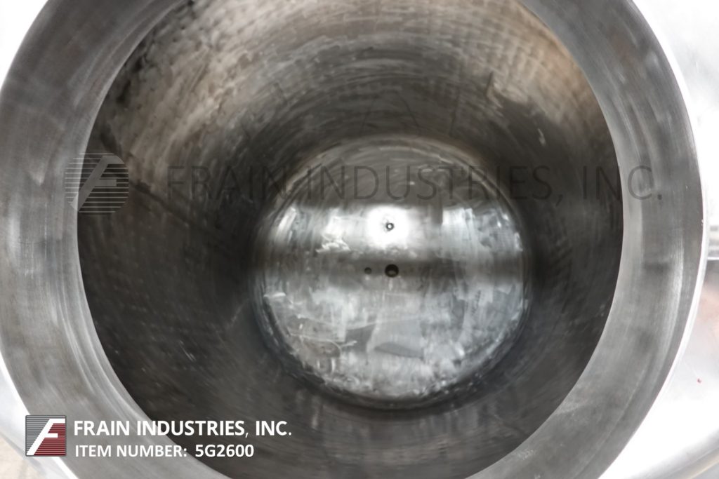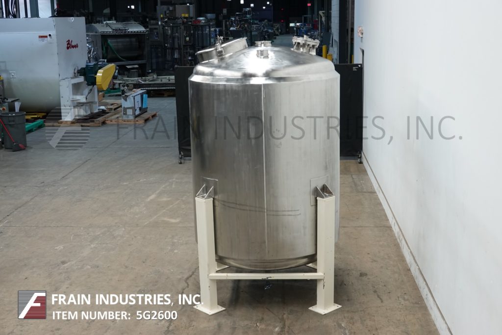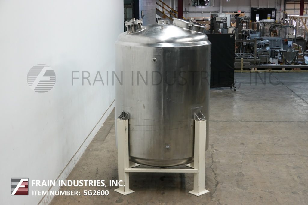 夏普维尔,700加仑,304不锈钢,夹克坦克。直径56“ x 66”直墙。夹克评分:110psi。配备有(1)5.75英寸ID的圆顶顶部,(1)3.75“ ID,(1)2” ID,(1)1.5英寸ID端口以及20英寸的Man Way,带有抬起螺栓向下盖子。盘底有(1)1.5英寸的螺纹和(1)2英寸的螺纹端口。主排放是(1)3英寸ID,带有18英寸的接地间隙。安装在(4)不锈钢腿上。