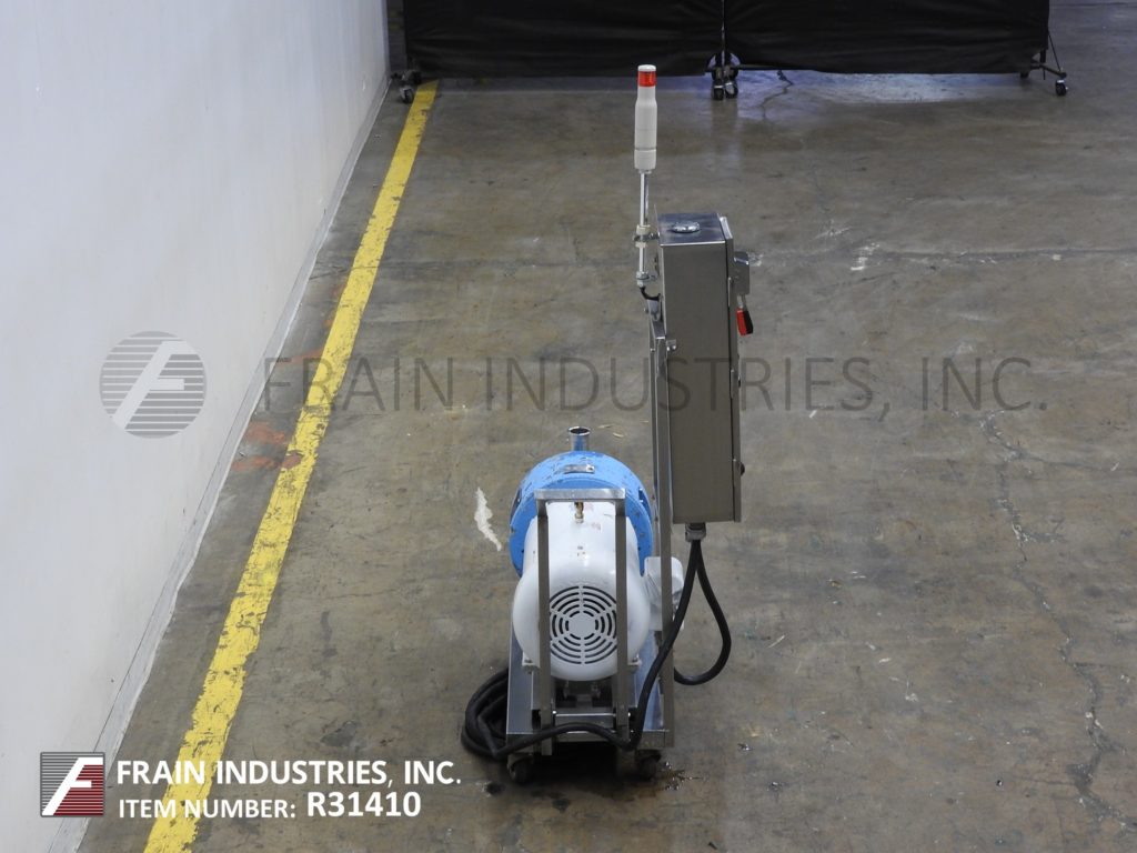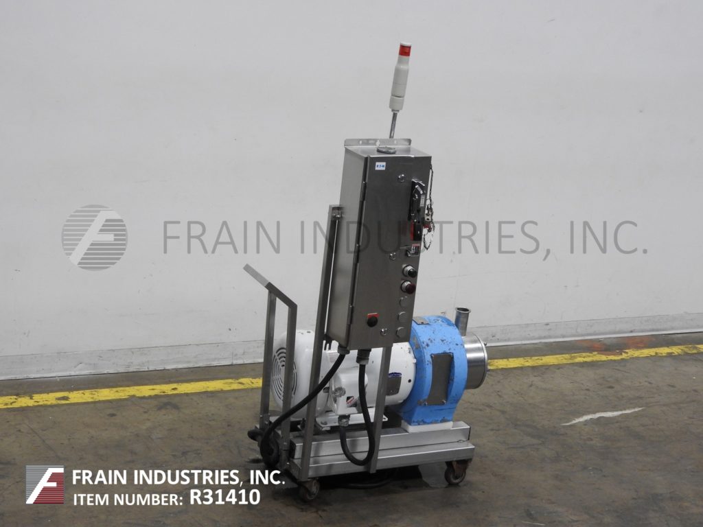 Silverson多用途在线均质器、混合器,每分钟/小时有加仑产品-取决于材料和应用。316不锈钢接触件,设计最大工作压力高达100 psi(7 bar),具有可更换的转子和定子混合头。配备外径为8-3/4“的法兰前盖,带(6)3/4“螺栓安装在4”中心,具有2-1/2“外径/1-3/4”内径的前部和顶部出口,能够运行高达3520 rpm,并具有20个电机驱动。安装在手推车上,带有脚轮和控制面板,带有启动、停止按钮和statis灯。可用于不同行业的各种不同应用,用于混合、崩解、均质、乳化。