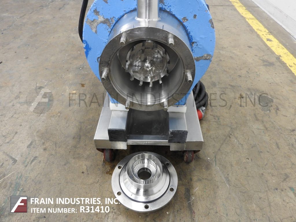 Silverson GX15型,高速、高剪切、插入式间歇式混合器,可变速至3600 rpm。316不锈钢接触件。配备15马力电机、48英寸长x 1-1/2英寸轴和6-1/2英寸溶解头,以及额外的6英寸向上推力推进器和32英寸容器防溅罩。